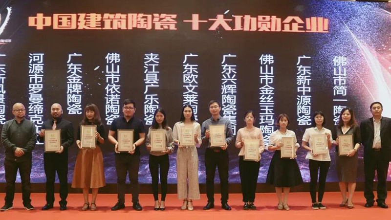 依諾瓷磚榮獲“中國建筑陶瓷十大功勛企業”證書▲