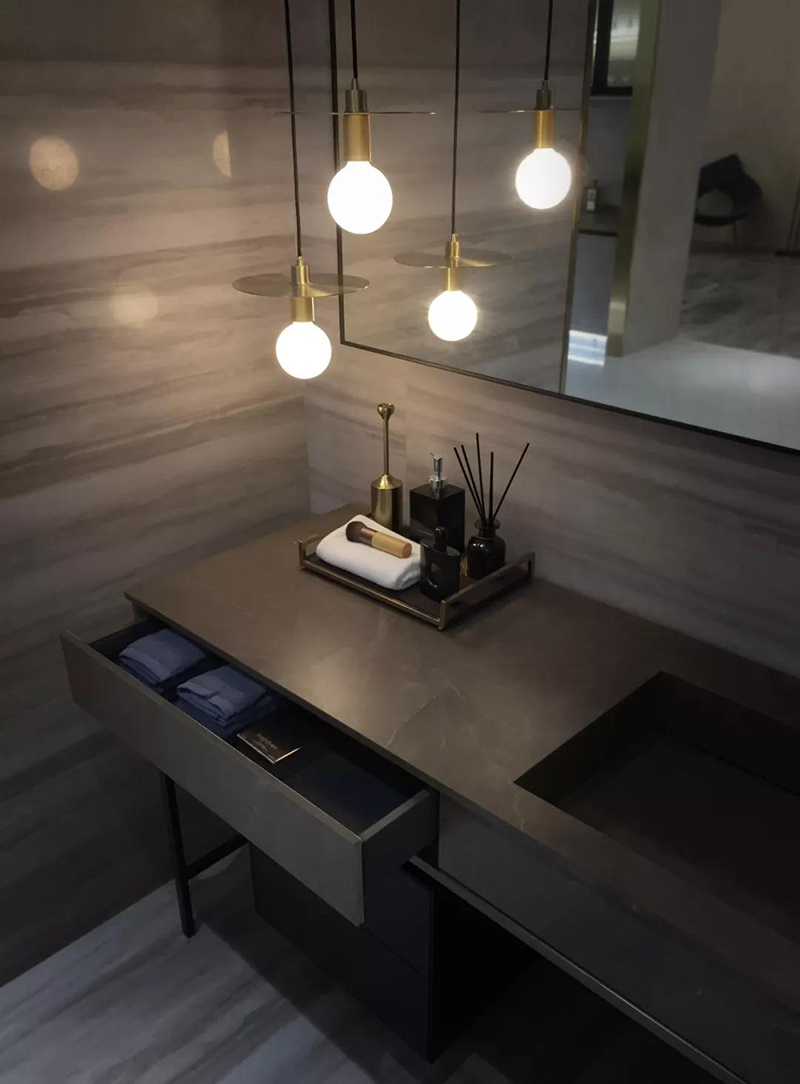 依諾瓷磚【全瓷定制館】,主打現代輕奢風,而【輕奢】這一定位,在依諾瓷磚是通過【風格】與【產品】兩個點來呈現的。