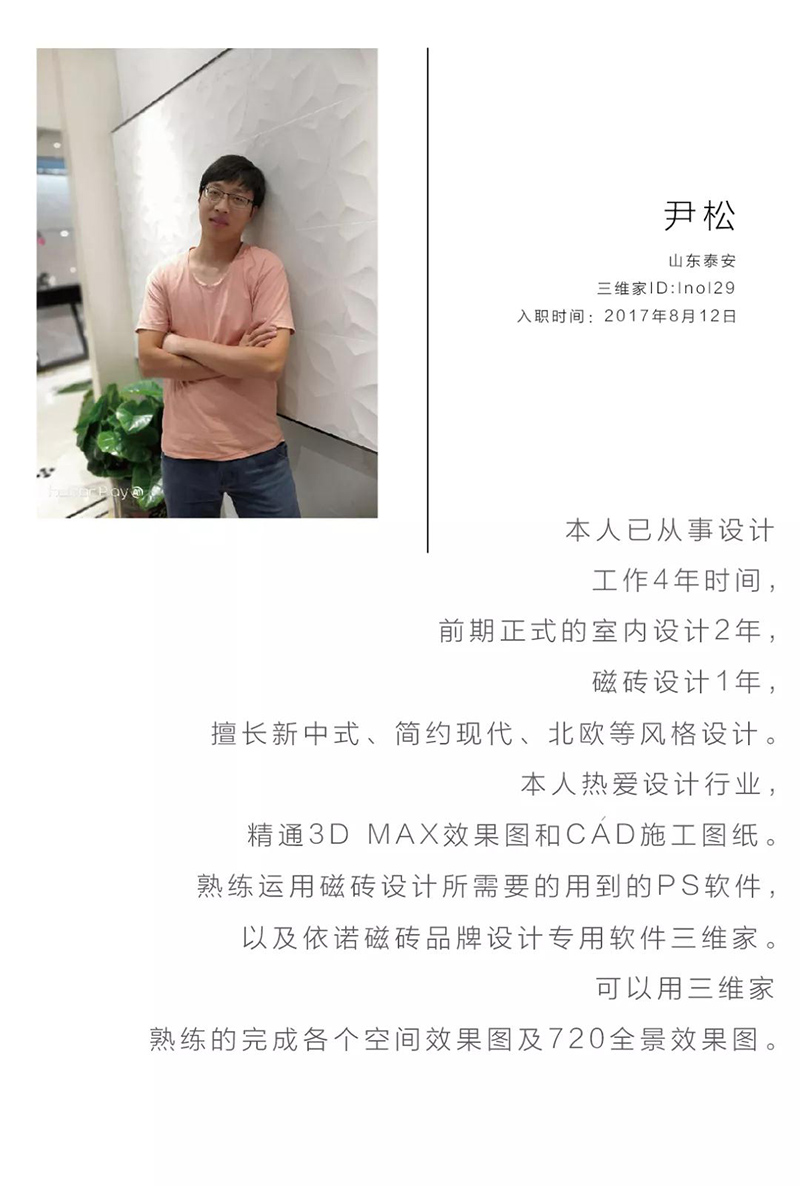 之前在馬可波羅瓷磚和博得精工玉石擔(dān)任過(guò)沈陽(yáng)總部設(shè)計(jì)師,