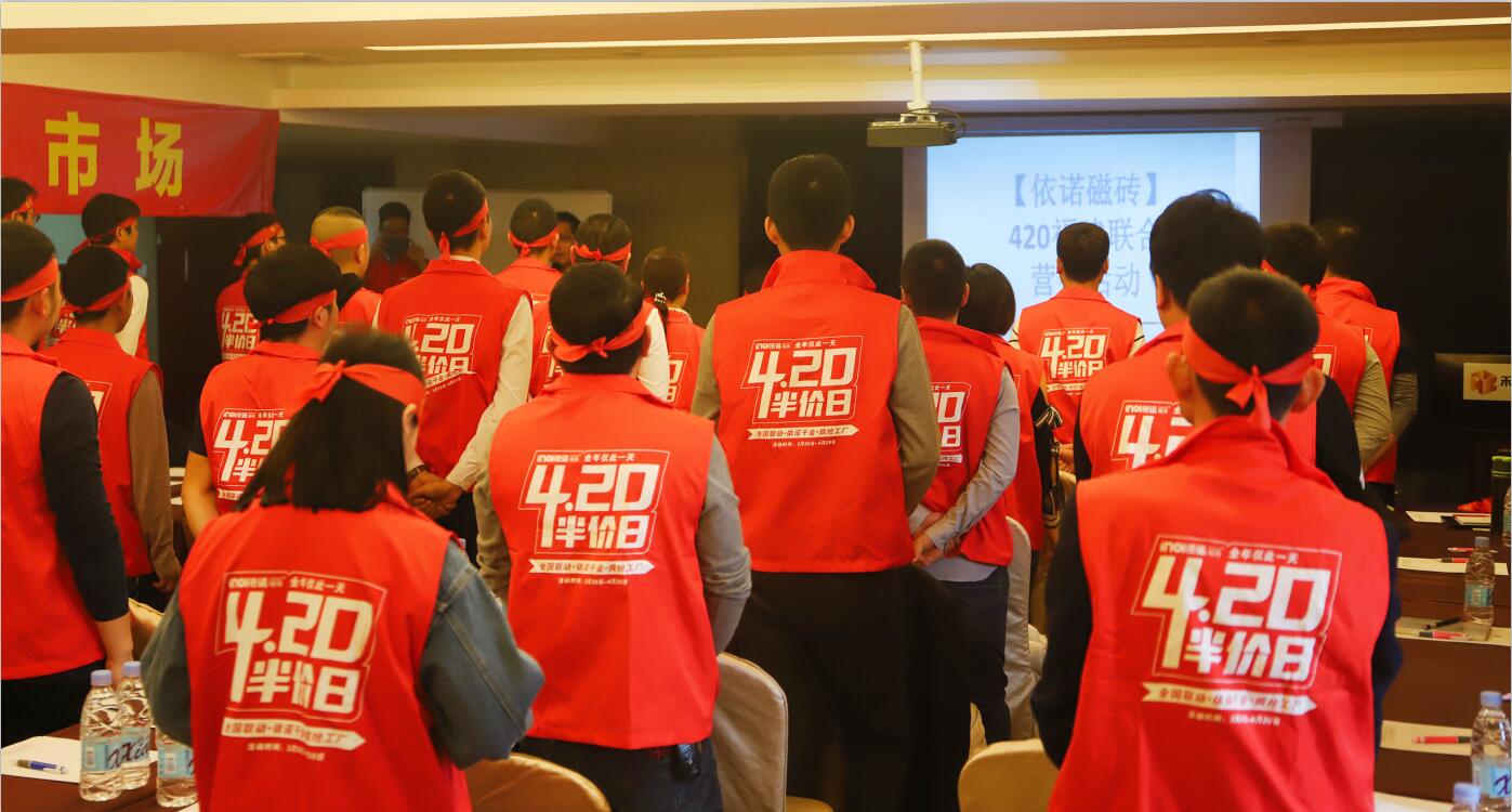 為了全力推動終端的高速發展,本次啟動會不僅強化了團隊建設、品牌和企業文化輸出,還為在場依諾瓷磚家人對“4.20半價日”營銷攻堅活動的執行流程、目標分解、激勵措施、區域優勢等做了詳細的講解,揭秘終端成交法則精髓,現場經銷商反響熱烈,獲益匪淺。