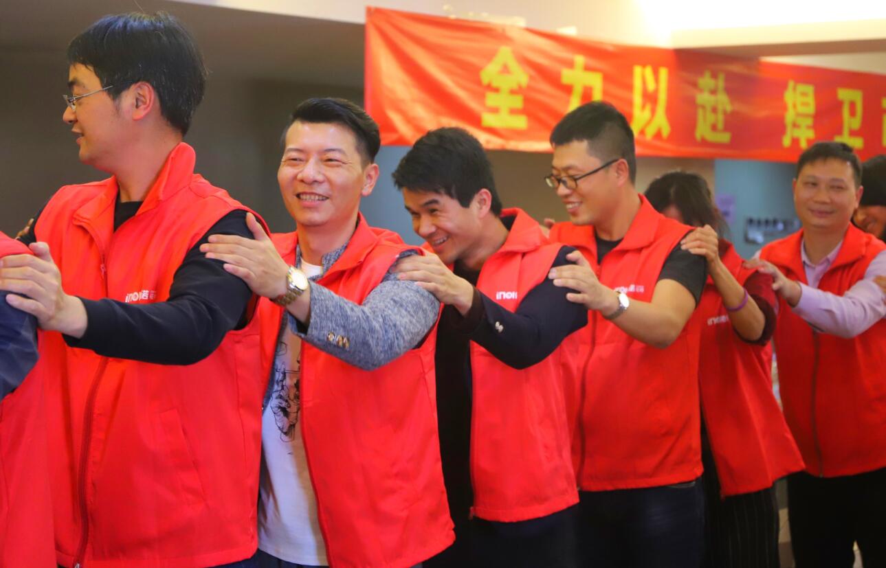 上午9點啟動會正式開始,第三方兵蟻傳奇王老師對在場的依諾瓷磚家人進行了“陣前練兵”,通過一系列拓展活動和技能游戲,快速調動全場氣氛,在場的依諾瓷磚家人投入到全神貫注的學習中,激情高漲,熱血澎湃,必將在福建引爆一場史無前例的營銷風暴!