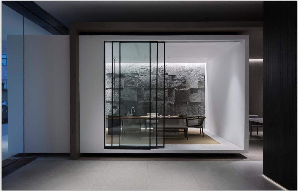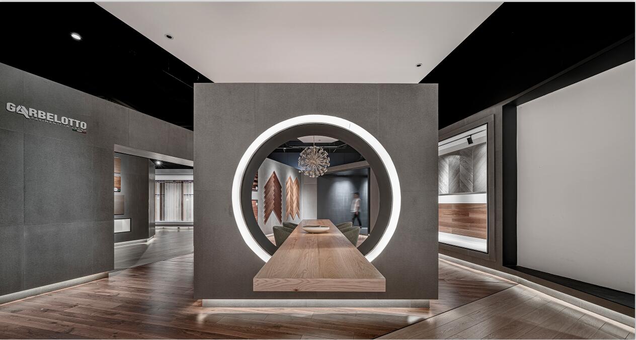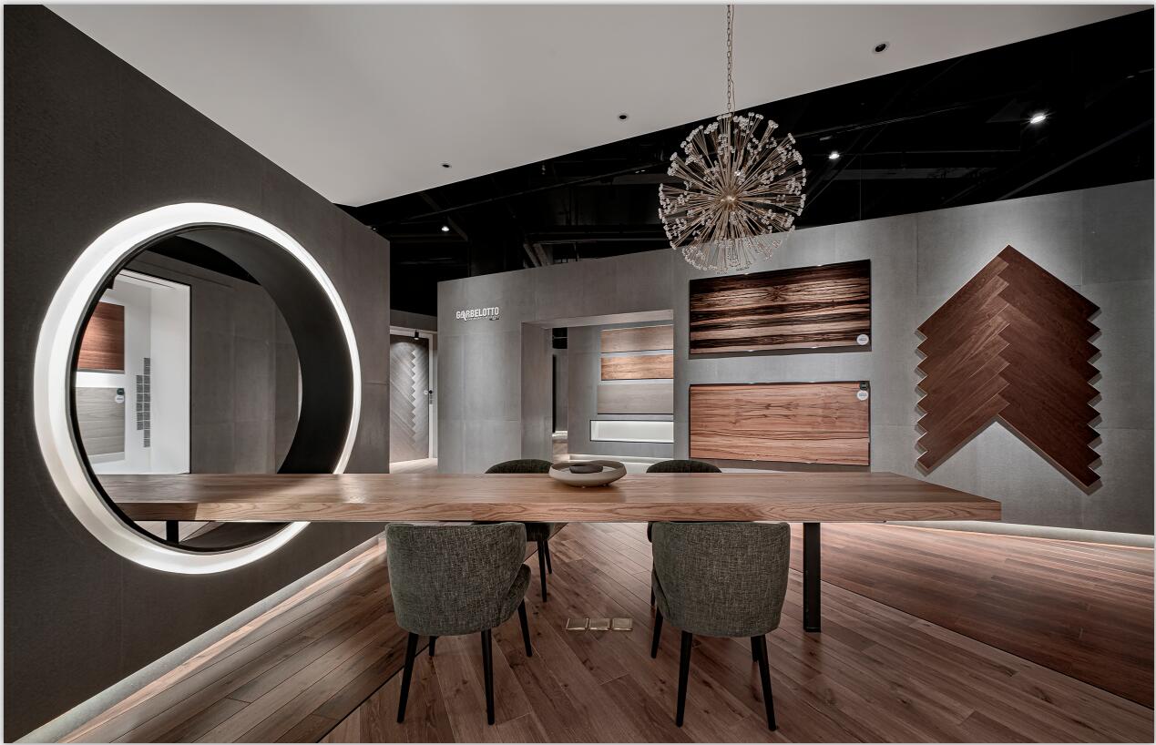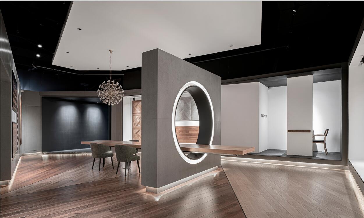 本案位于商場內,所以需要通過空間表現,力求在眾多優秀品牌門店中突出自身產品特質與品牌調性。設計師采用了鋼板、水泥板、油漆作為空間的主要材質,更好地凸顯其地板產品的品質與格調。