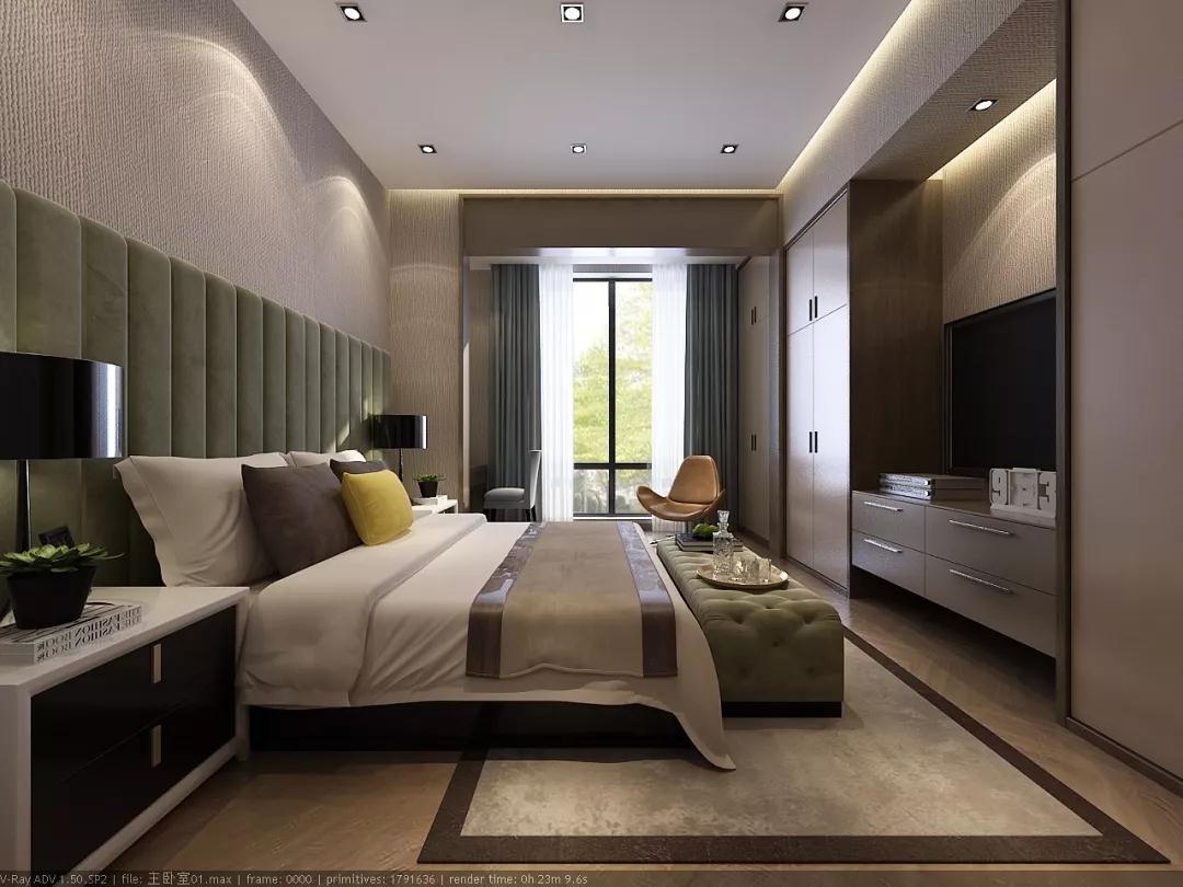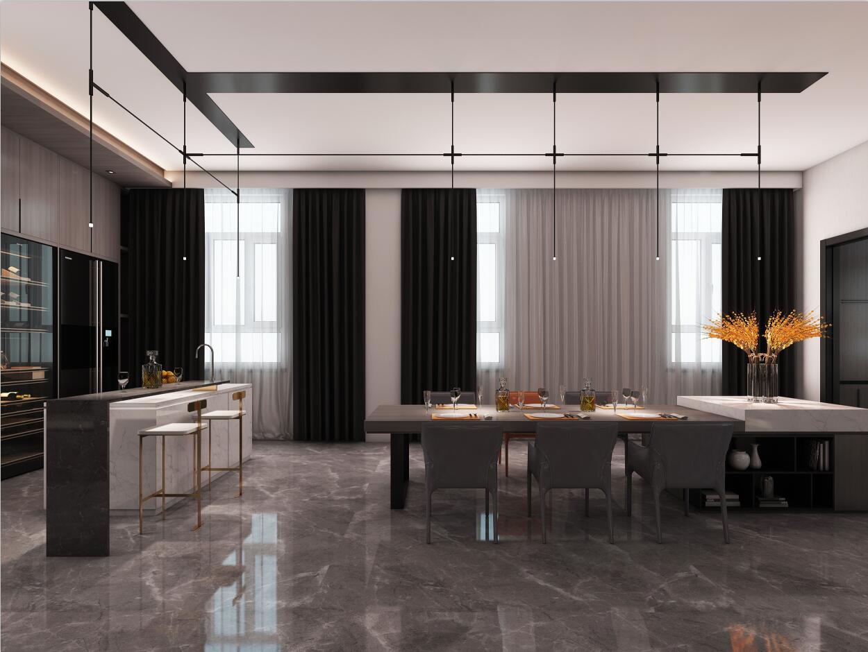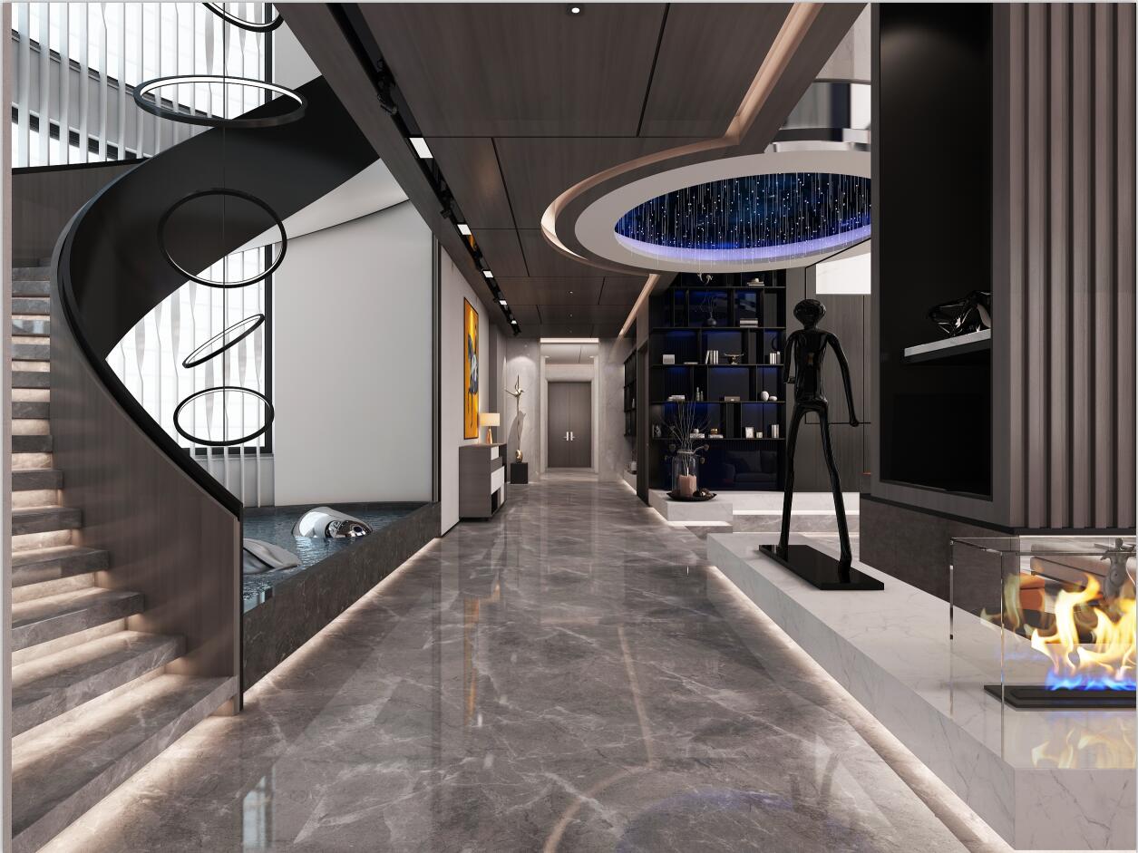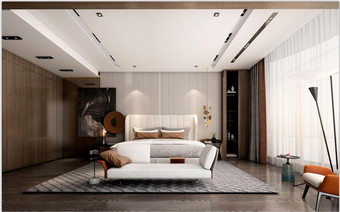 本案為現代主義風格家裝設計,充分運用空間中的層次與交錯組織,把形式與空間進行有機結合。運用點、線、面的空間元素,使空間中的物體組合具有強烈的美感;吊頂上黑、紅兩種恰到好處的色彩比例,為空間增添了強烈的現代科技感;最后,所營造出的居家氛圍可以使居室主人得到徹底的放松。