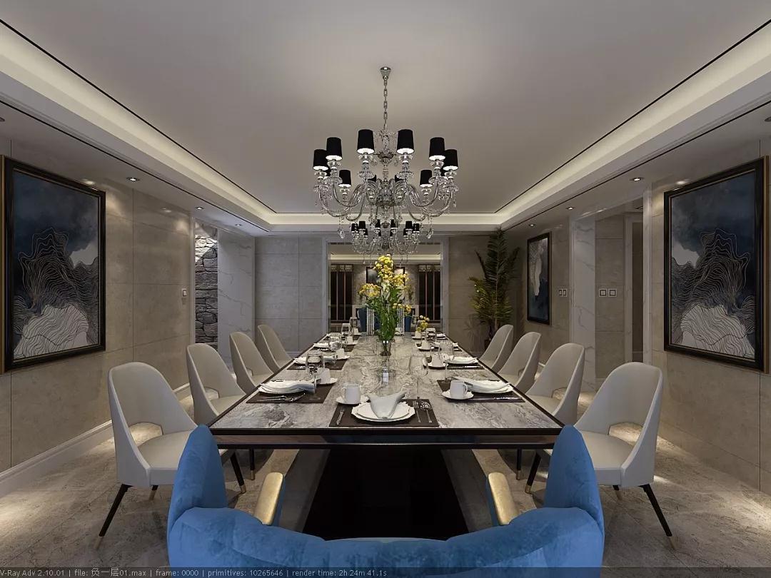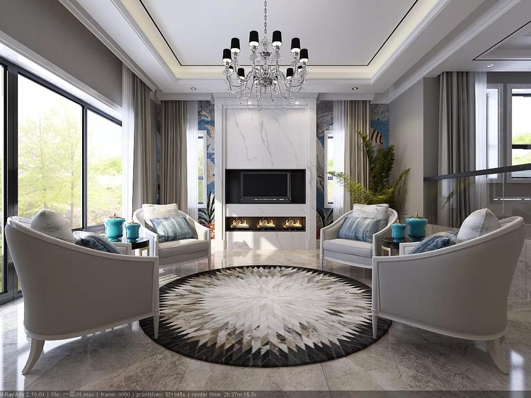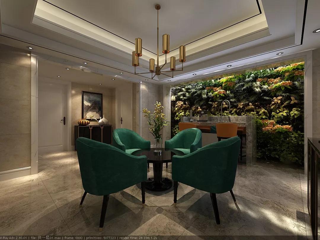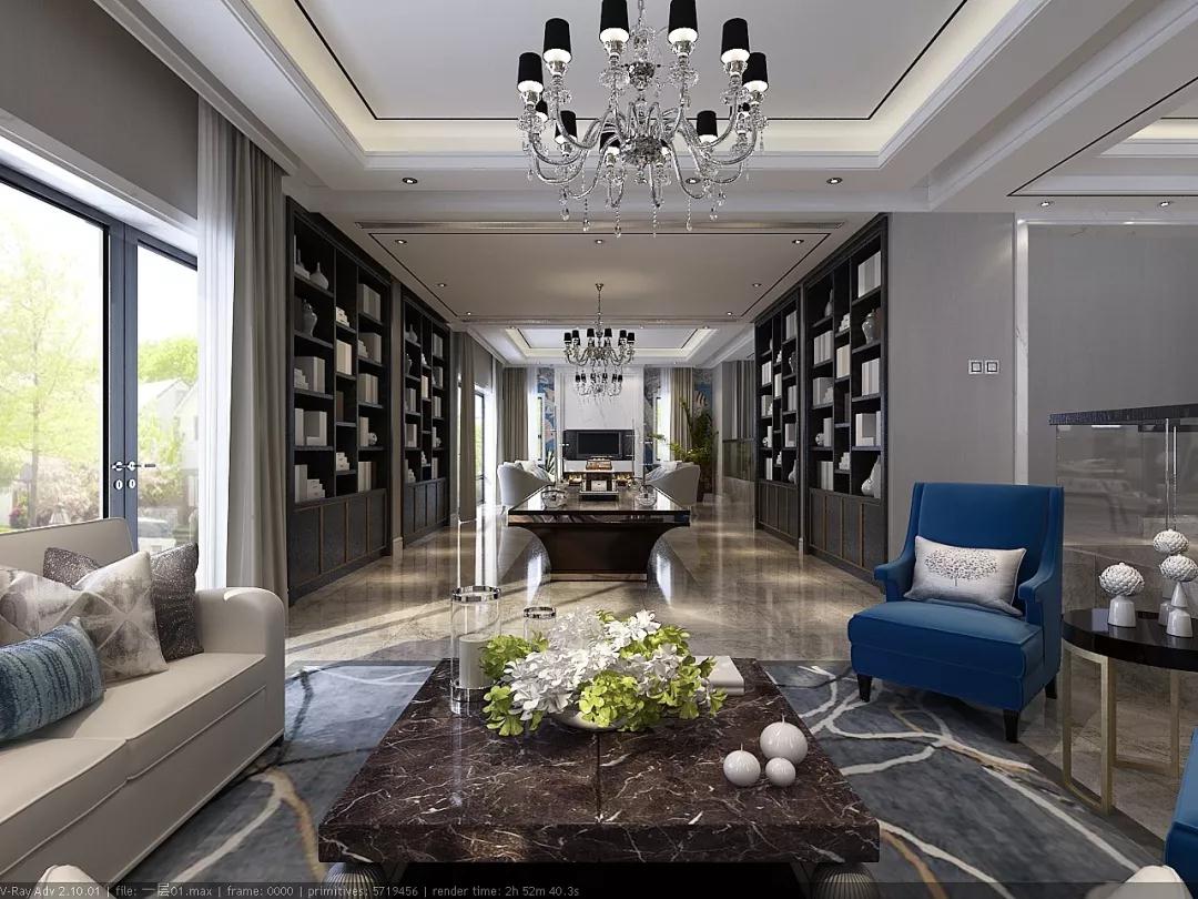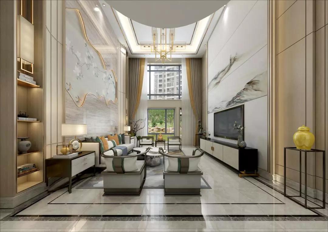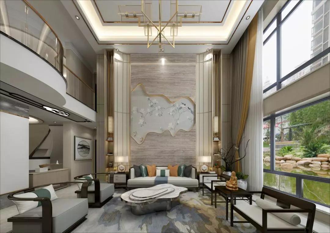 本案將新中式風格、美式風格與現代輕奢風格結為一體。新中式與美式的碰撞,再增加現代輕奢的設計元素,融合出飽含著時尚悅動的空間靈魂。