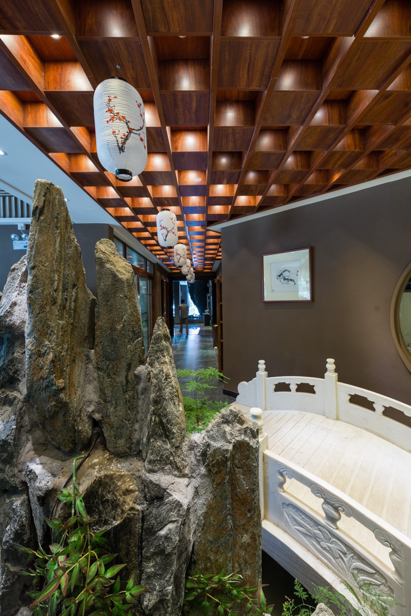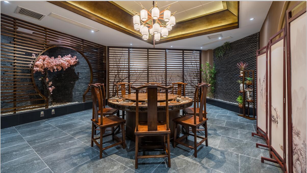 東方的風韻與藝術的雅致,共同營建出空間清寧澄凈、古樸秀雅的氣質美學。設計師在空間整合、色彩運用、細節搭配上賦予用心,傳遞出清雅溫潤的視覺美感。木飾面、金屬裝飾及多變的線條,圍合出空間的輕盈、靈性與意趣,盡顯人文氣質。