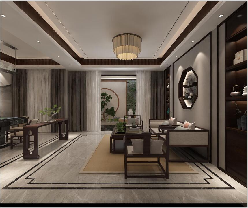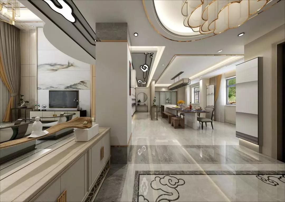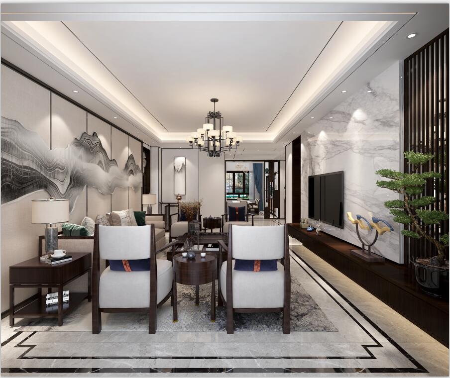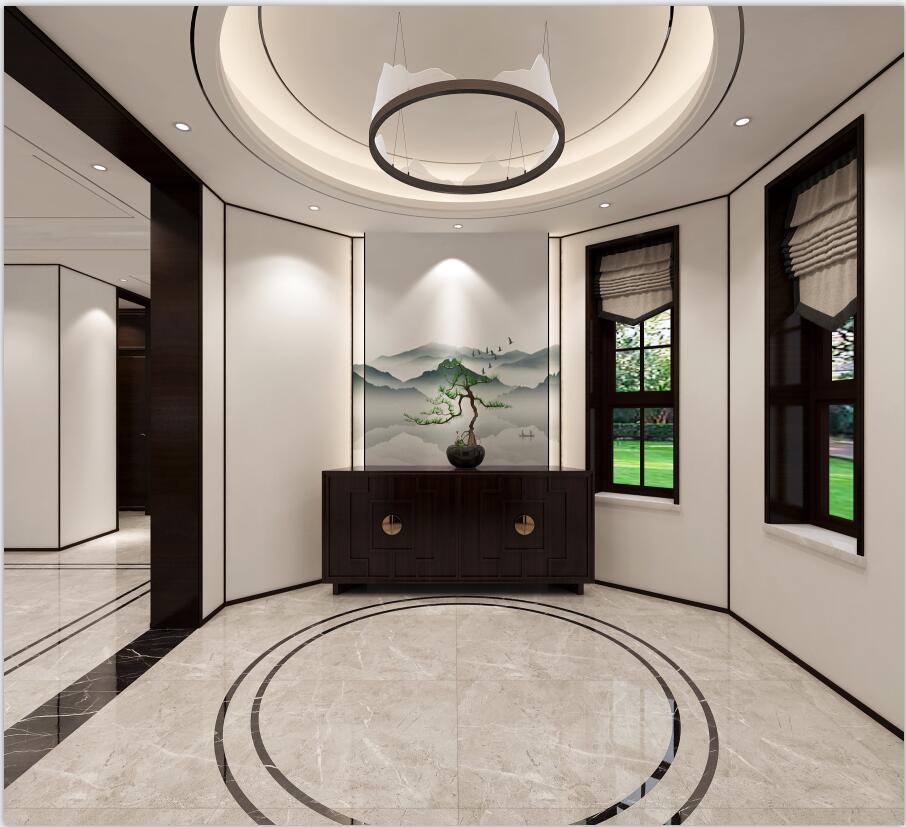 此案例為新中式風格,設計靈感源于江南文化。山川風景之靈氣,傳統文化之精華,藝術與文化的融合,呈現出獨特的意境之美。“寬”大為懷,儒有“廬”舍。新中式的現代表現形式是簡潔而優雅的,它能將中國元素與現代家居特色相糅合。