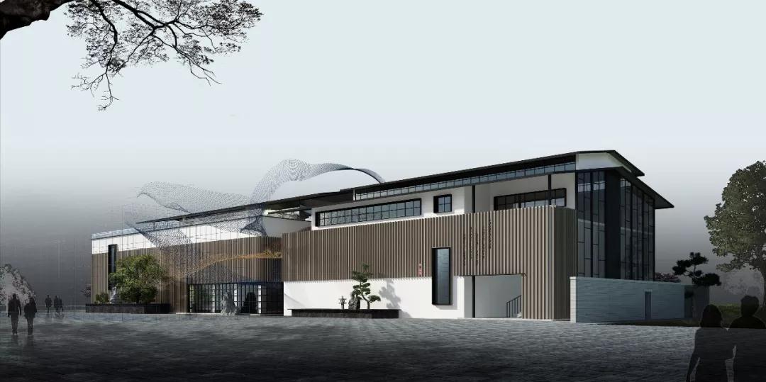 本案原址是望亭鎮活性碳廠和面粉加工廠,設計者從「活性碳」與「面粉」中尋找靈感,采用了黑白元素作為建筑底色,不僅代表著蘇州建筑特色,也是代表中國傳統中很多有形或無形的東西:圍棋象征智慧;太極代表中國哲學思想;書法和國畫則是藝術的傳承。
