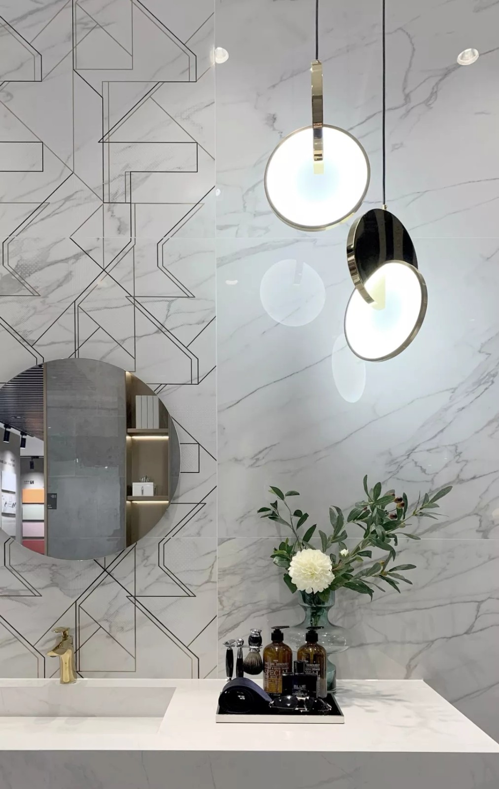 杜總還帶來了由依諾自主設(shè)計(jì)與研發(fā)的新國(guó)貨【依諾巖板】,帶來材料應(yīng)用的全新靈感。【依諾巖板】物理性能強(qiáng)悍,突破了墻地裝飾材料的使用局限,可作為【板材】應(yīng)用,高顏值,無甲醛,更健康,拒絕生物污染,同時(shí)具有抗沖擊、耐刮磨、不吸污、耐高溫、耐酸堿、易清潔等卓越性能,能夠?yàn)椴煌臻g提供多種定制方案。