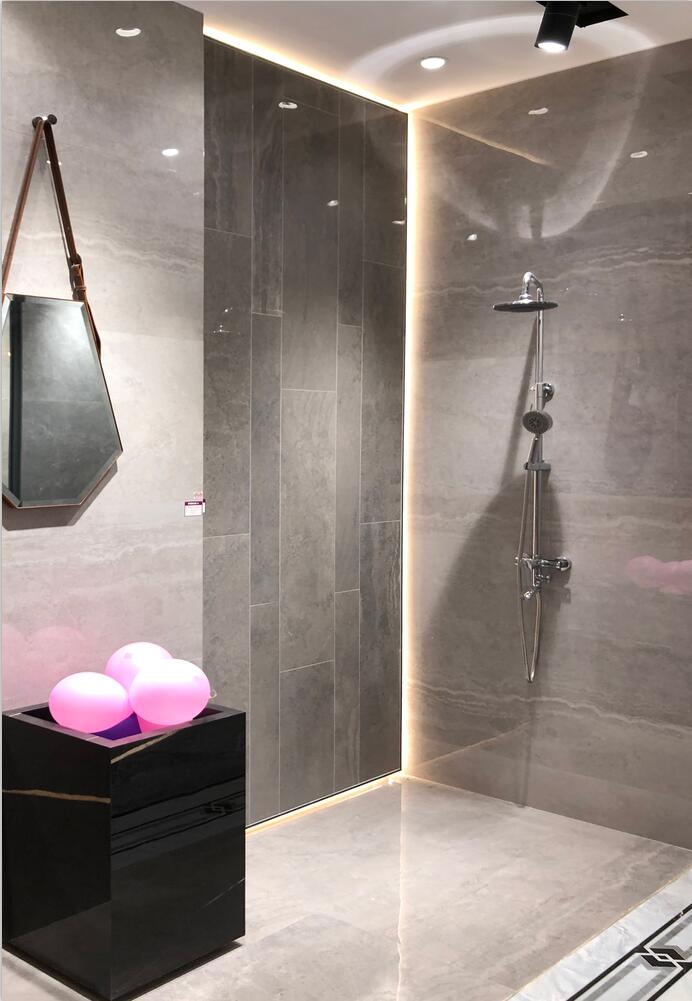 店內全采用依諾瓷磚自主研發產品,以灰、白、黑把持基調,搭配簡約精致家具軟裝、精心設計的燈光,展現出高級的時尚態度和生活品味。