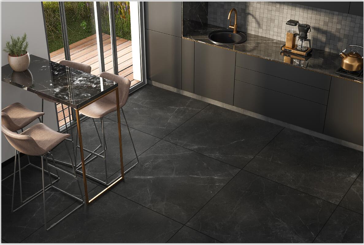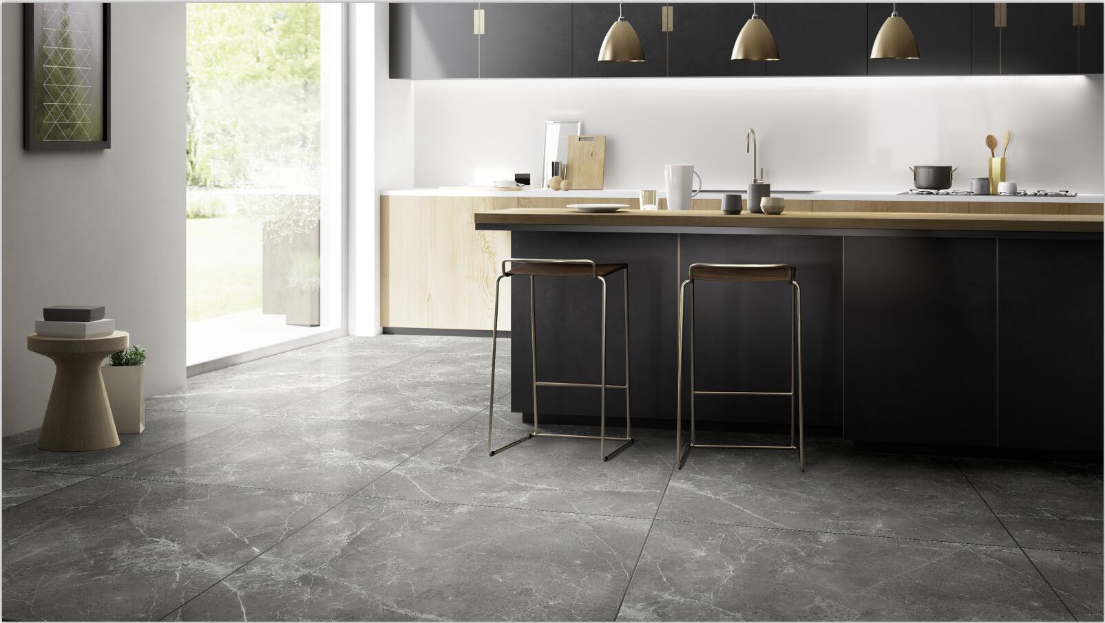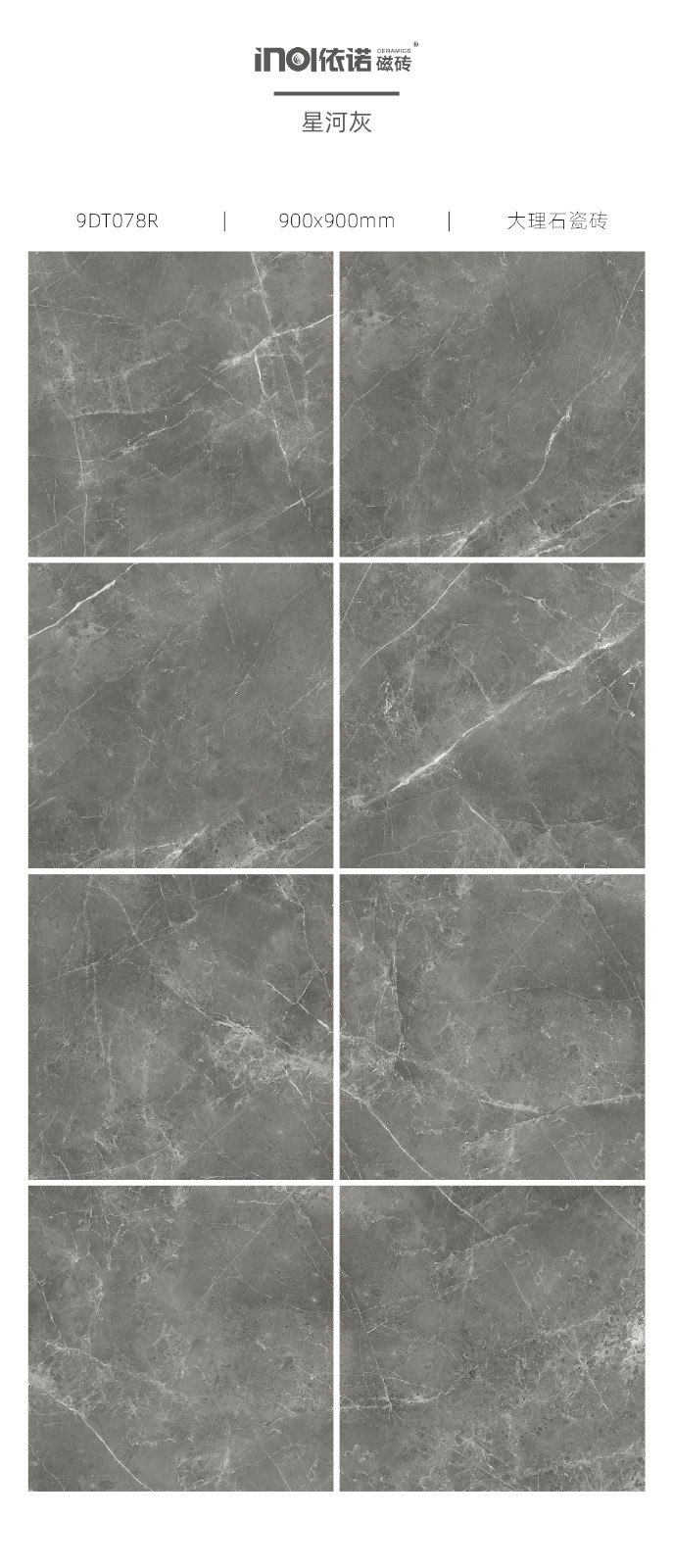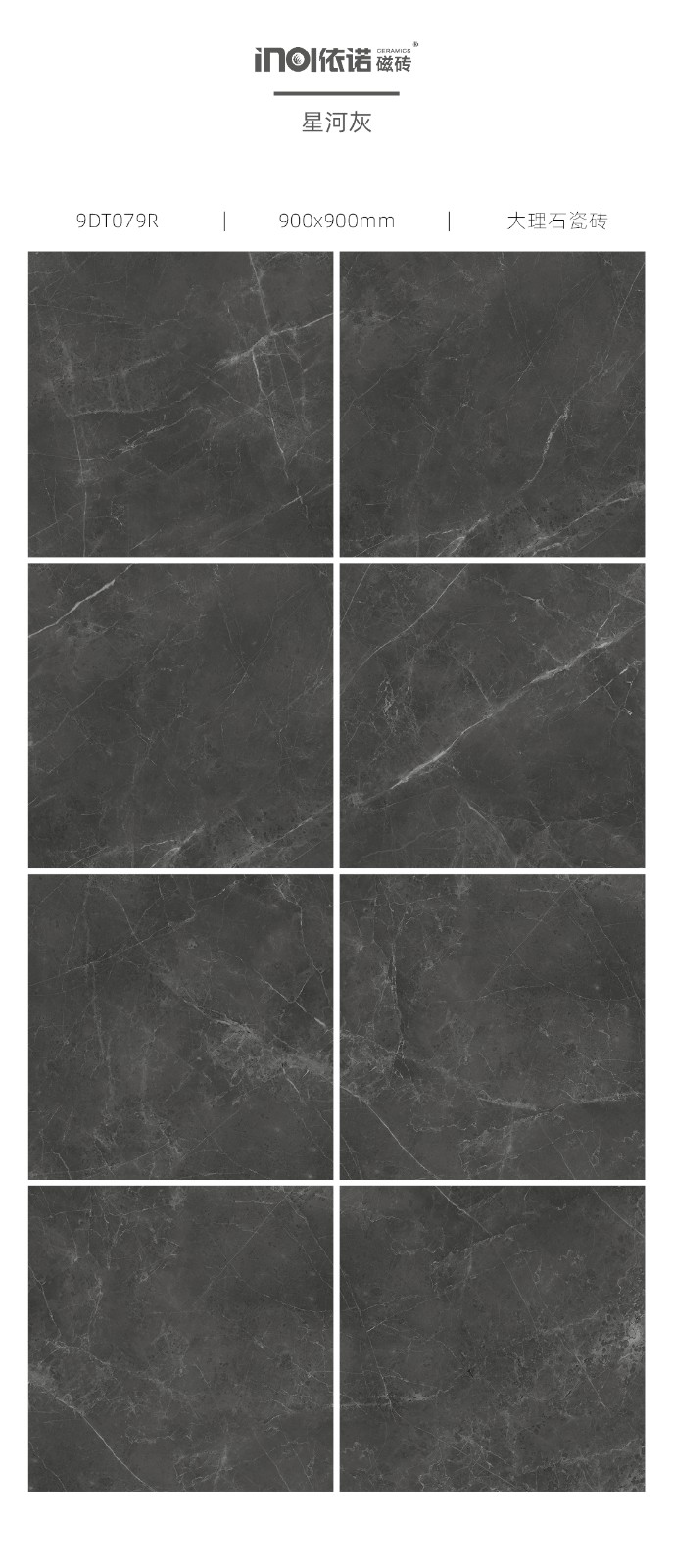 依諾大理石瓷磚【星河灰】通過意大利TECNO FERRARI(天工?法拉利)噴墨設備與西班牙意達加釉料呈現出中灰、深灰兩種色調,如夜空般深邃。