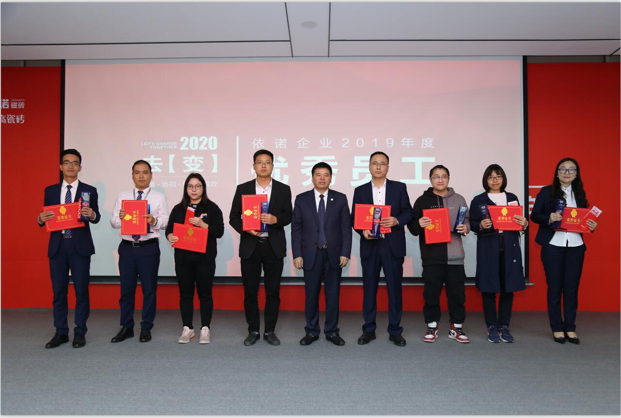 2020年1月4日,“2020,去【變】——尊重、協(xié)同、聚焦、高效”。依諾·巖板|瓷磚,2020員工年會圓滿舉辦,依諾品牌營銷中心領(lǐng)導(dǎo)及全體員工相聚于依諾企業(yè)總部,共同回顧2019,開啟2020新征程。