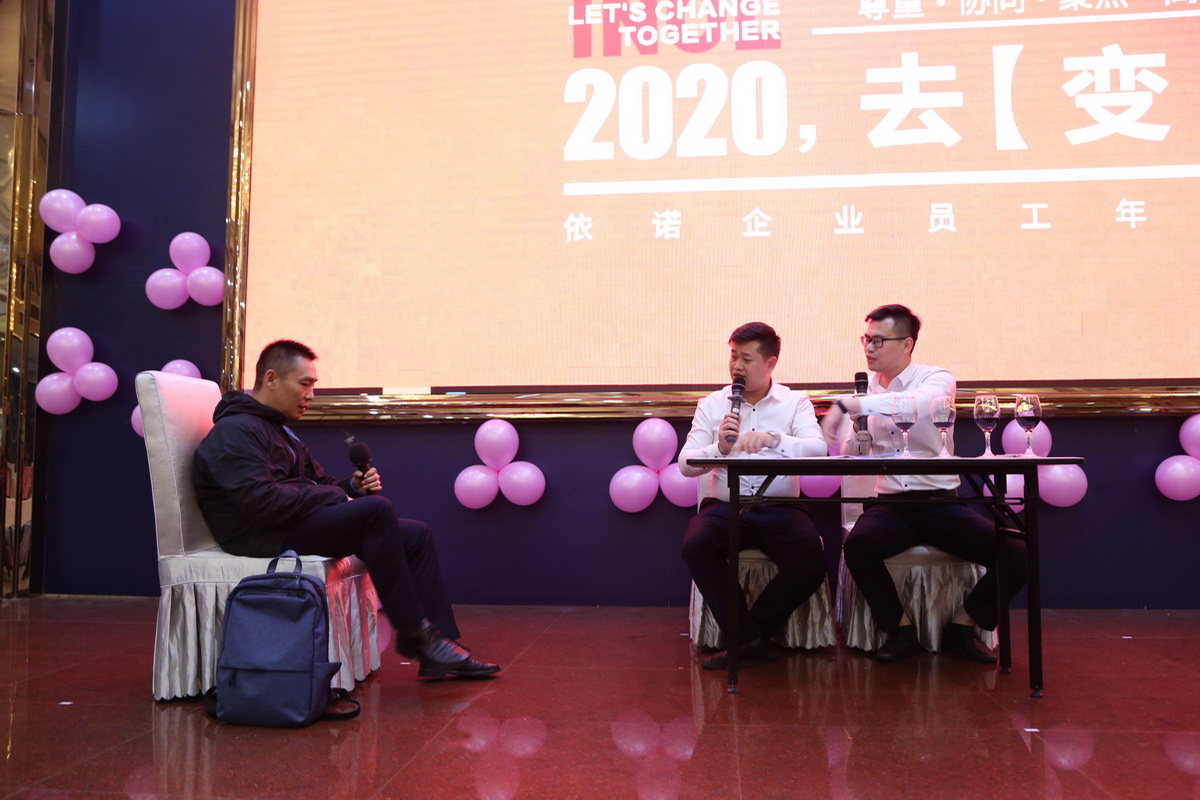 依諾企業(yè)總經(jīng)理郭萬龍在會上以【我們,為什么要“變”?】為主題發(fā)表講話。他表示:企業(yè)不變的,是永遠(yuǎn)【在變】,回望2019,依諾在承受著外圍大環(huán)境巨大挑戰(zhàn)下,在品牌、產(chǎn)品、生產(chǎn)、營銷、終端等各方各面仍然交出了令人滿意的答卷,這個過程中,依諾人經(jīng)歷了許多的改變。