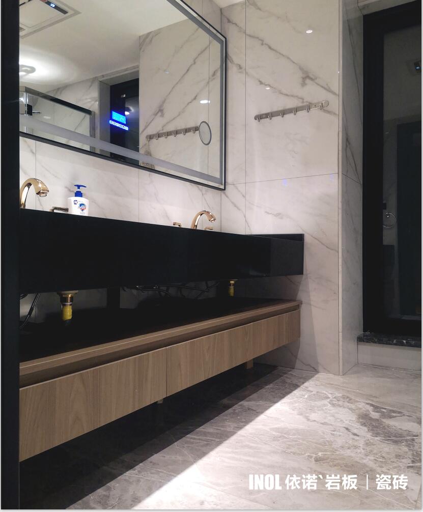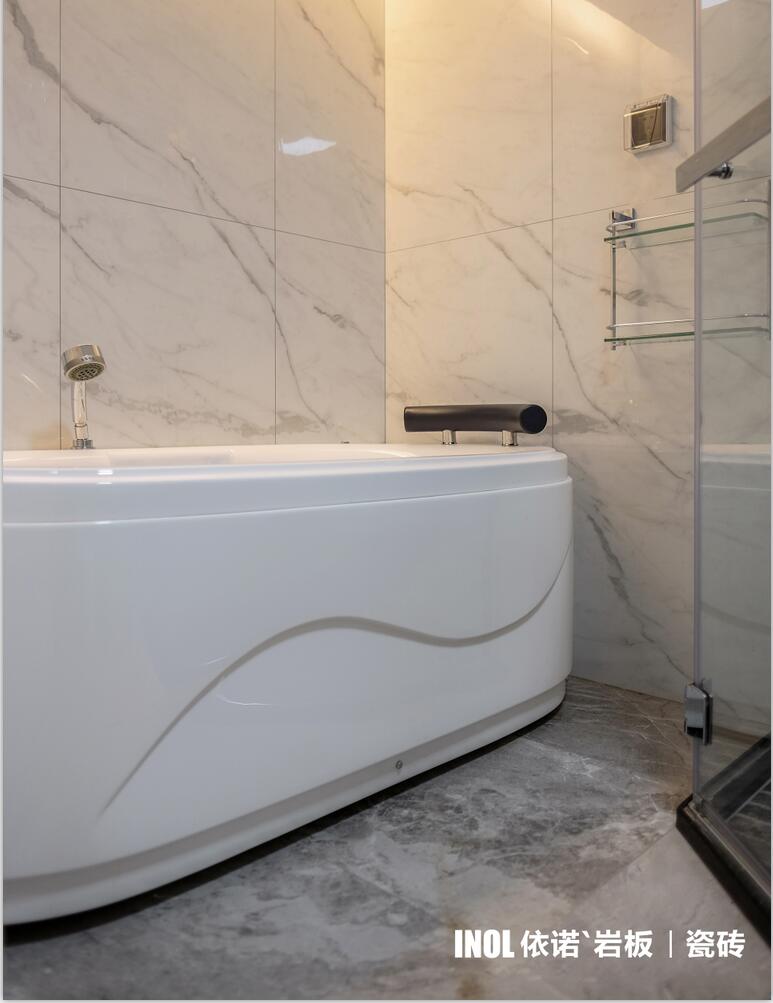 衛(wèi)生間瓷磚的連續(xù)紋理設(shè)計(jì)與玻璃的通透性,增強(qiáng)了空間的靈活性與延伸感,柔和光線又讓空間多了幾分輕松隨意。