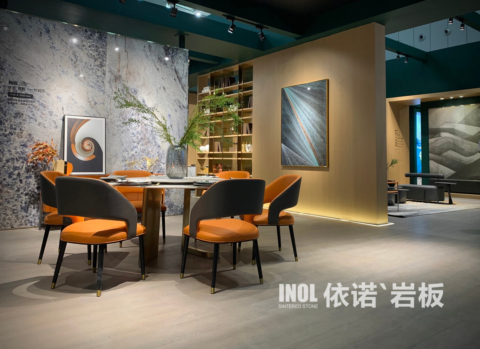 【依諾巖板】展位準備了家裝中更實用的【一片到頂】大巖板,以及整套的【家居全案落地】方案,大到【飄窗】【步梯】,小到【花器】【茶具】,從【新中式】到【現(xiàn)代輕奢】,給觀眾帶來了更貼近家居場景的深度體驗。