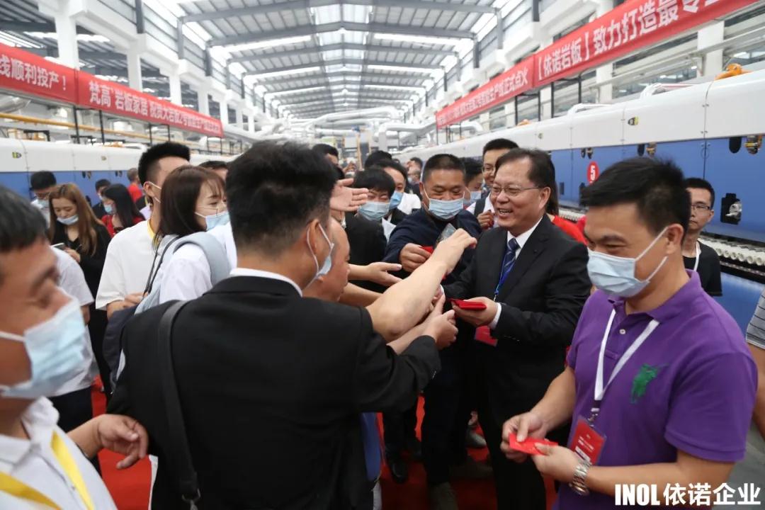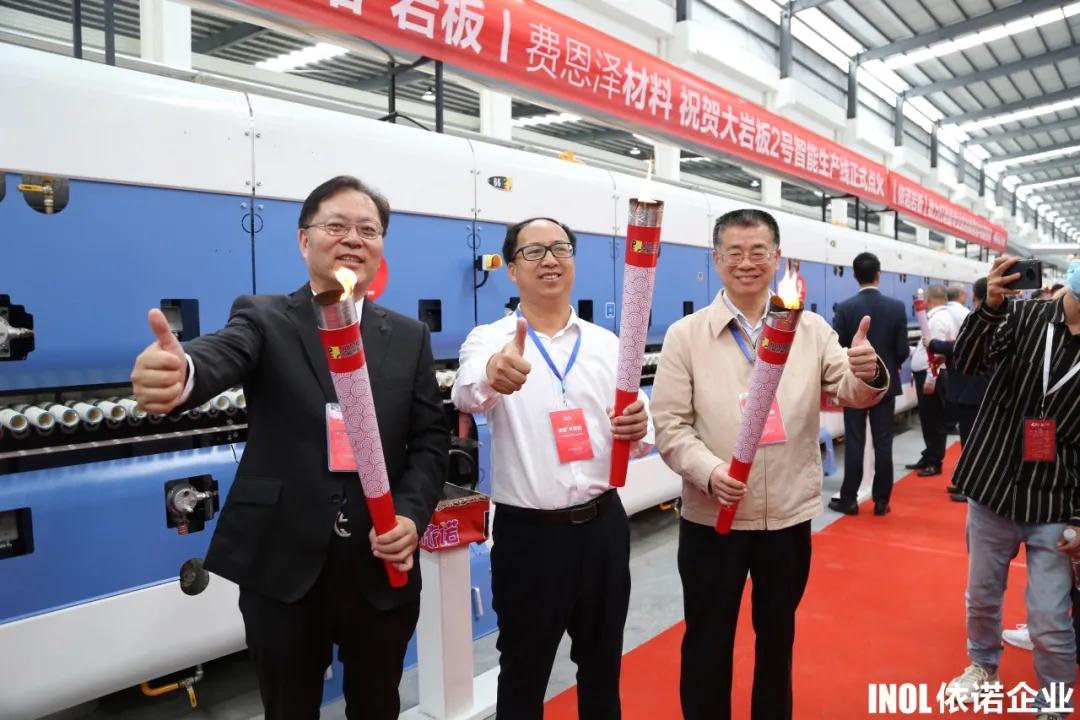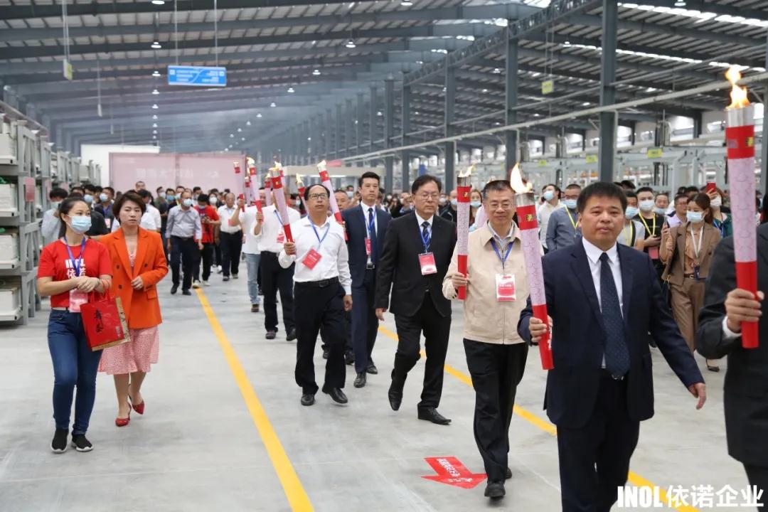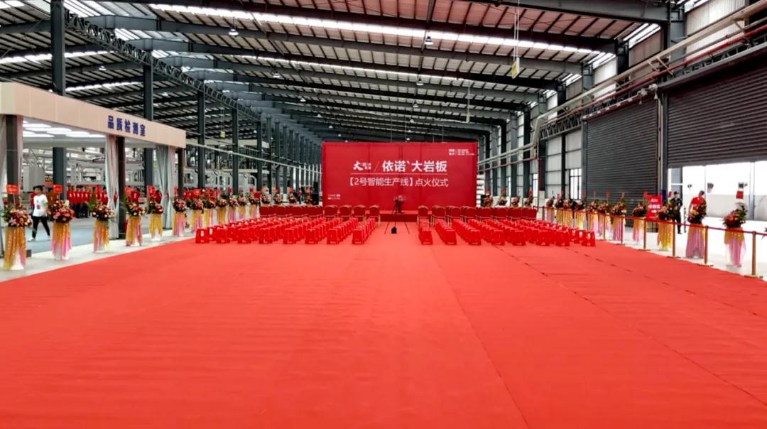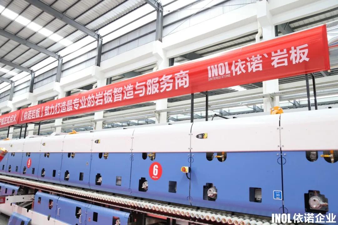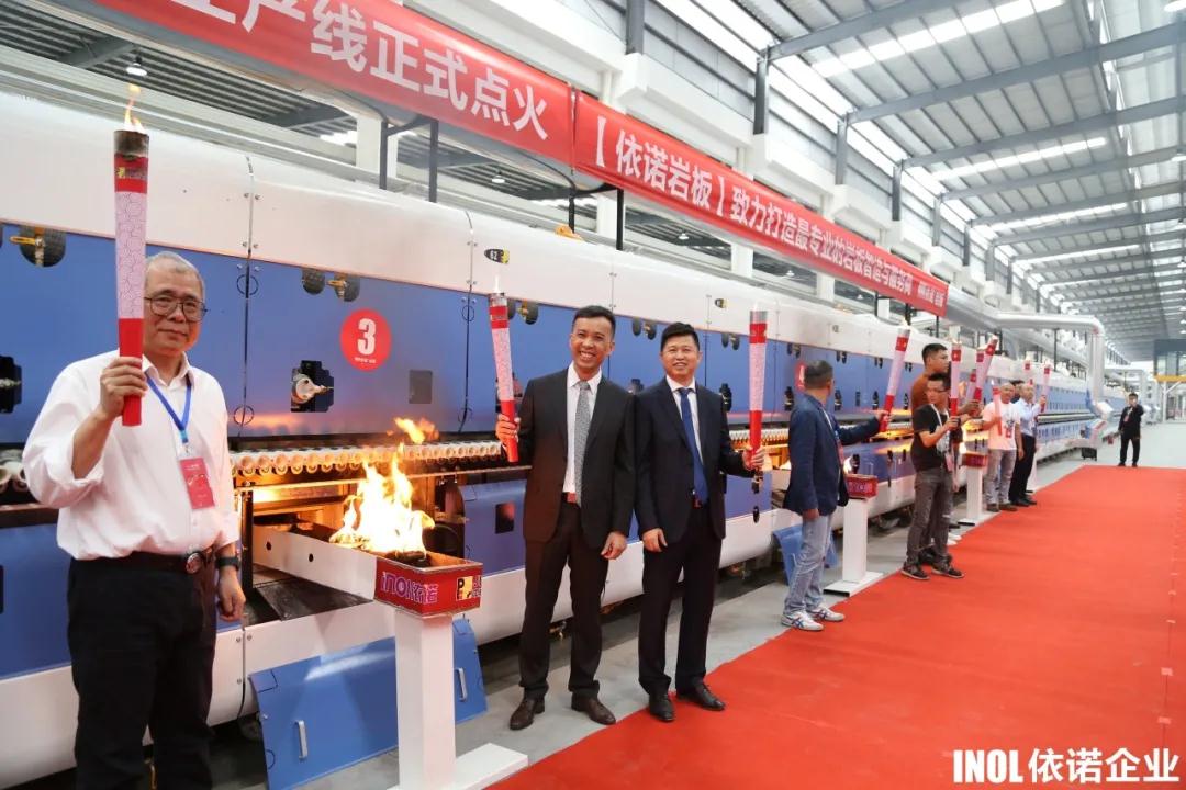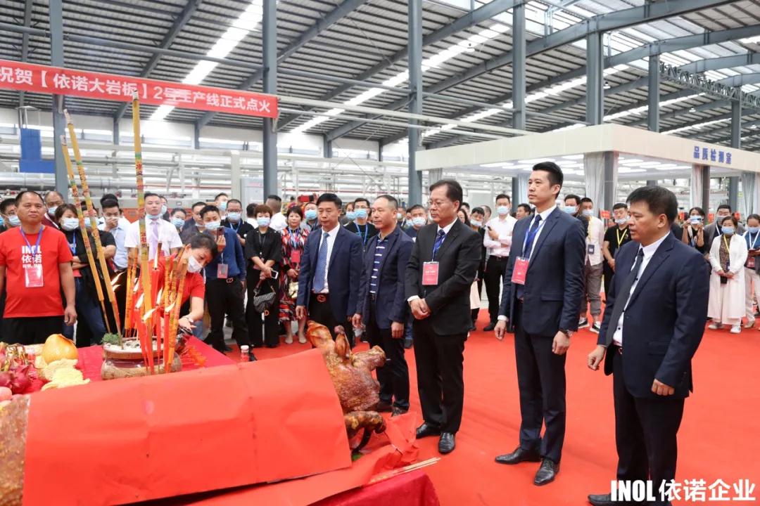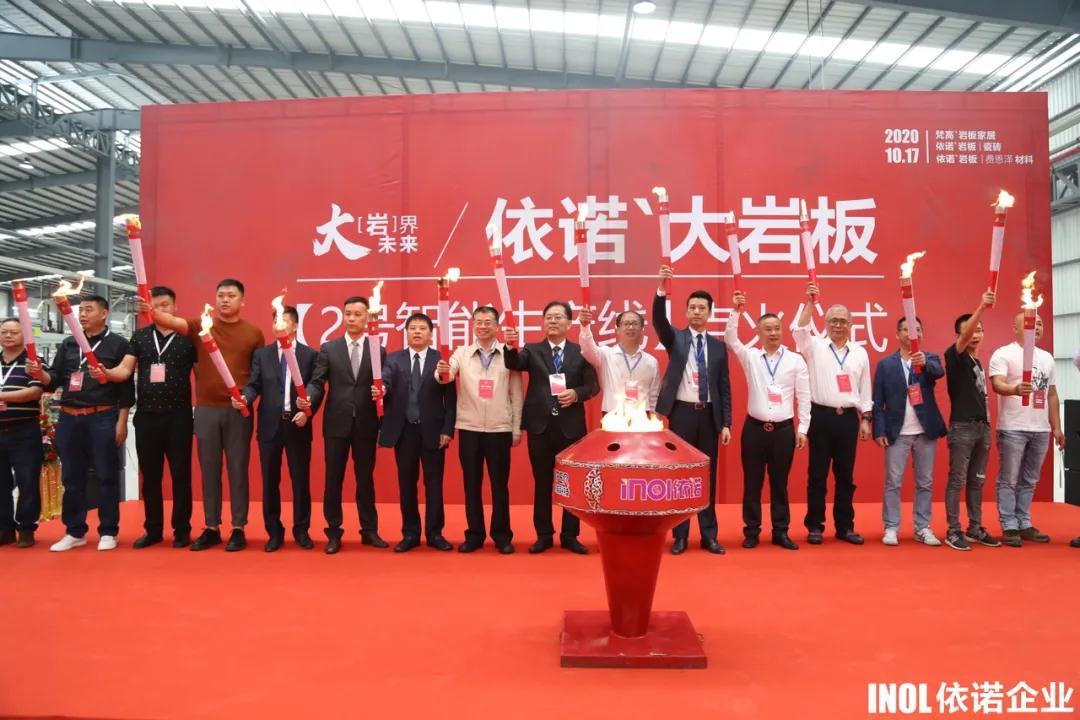 【依諾大巖板2號智能生產線】順利點火投產。肇慶市鼎湖區人民政府副區長陳偉慶,鼎湖區永安鎮鎮委書記謝澤明,中國建筑材料流通協會會長秦占學,中國建筑衛生陶瓷協會高級顧問、佛山市陶瓷行業協會秘書長、華南理工大學教授尹虹,中國陶瓷行業工業協會原秘書長黃芯紅,依諾企業董事長戴進財,企業總經理郭萬龍,巖板材料中心總經理田慶忠,品牌中心總經理戴富林,制造中心總經理李錦國,制造中心副總經理胡偉豪,采購總監戴富順,資產管理總監范柏成,中國建筑材料流通協會獎勵辦副主任兼會長助理張會,中鵬熱能公司董事長萬鵬,中鵬熱能公司總經理楊培忠,意大利薩克米企業香港公司銷售總經理李強輝,廣東泰萊機械公司董事長何錫歡,以及800多位來自全國各地的新老客戶,共同參與見證了此次點火儀式。