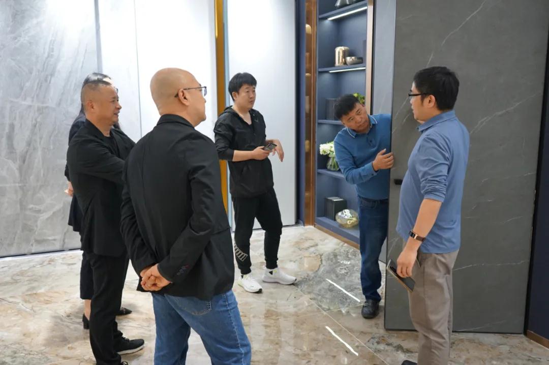 北京梵客家裝董事長李靜、北京梵客家裝主材負責人時海峰蒞臨依諾巖板瓷磚廠家—佛山總部參觀交流,依諾企業總經理郭萬龍、依諾品牌中心總經理戴富林、依諾企業渠道總監孫明浩熱情接待了他們。