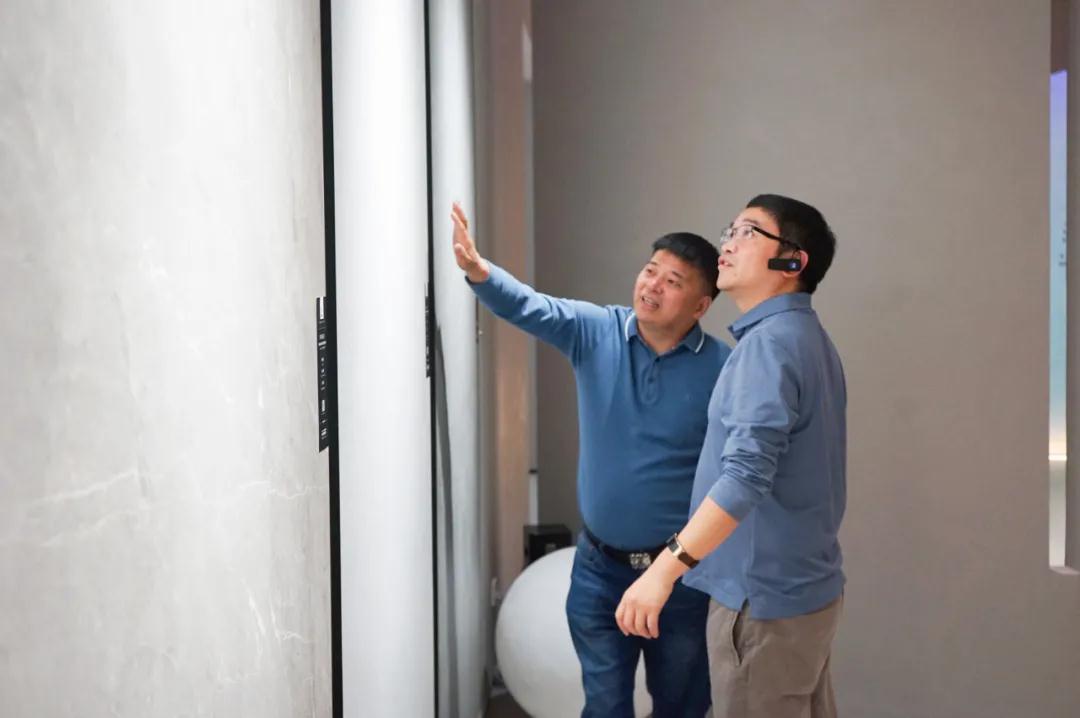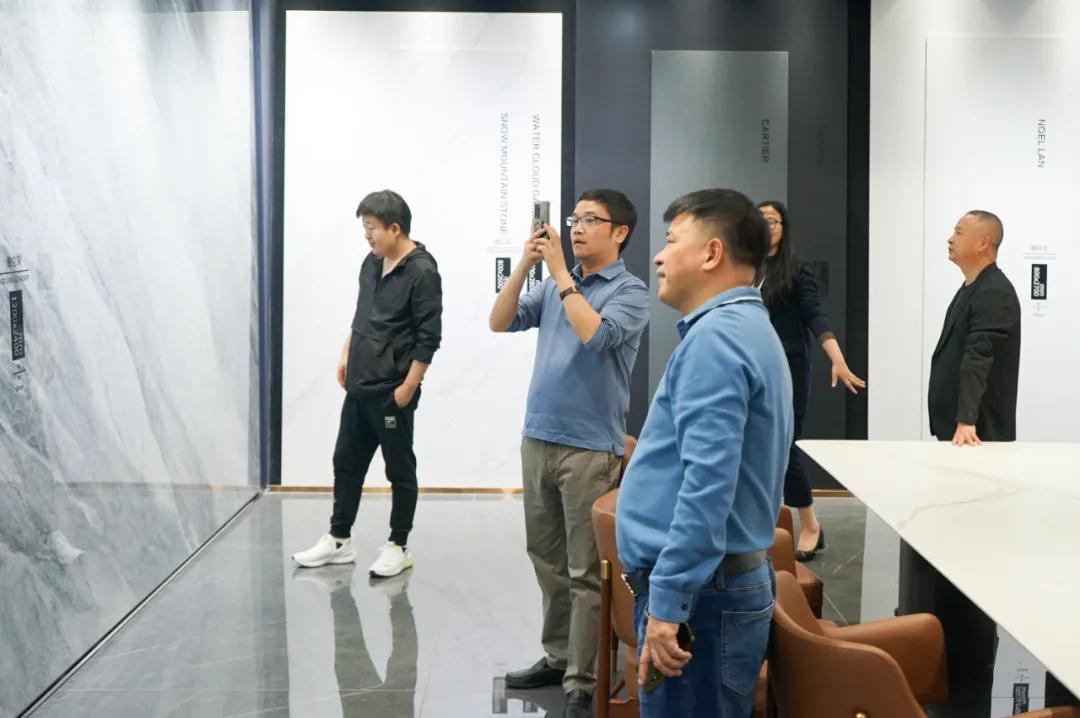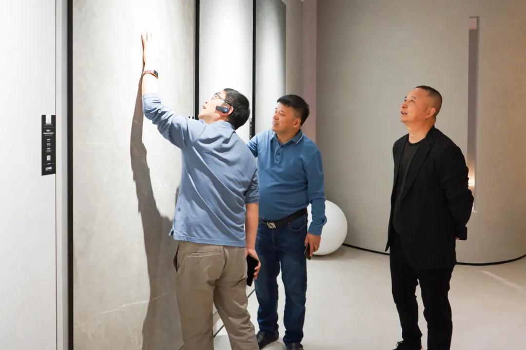 郭總和戴總首先帶兩位來賓參觀了依諾巖板瓷磚品牌全新展廳【梵高畫廊】,為他們介紹了數十款【啞光】瓷磚新品和最新的瓷磚工藝。瓷磚由【數碼模具】、【數碼干粒】、【數碼干粒刷拋】等領先工藝打造而成,紋理涵蓋了當下備受青睞的藝術涂料、微水泥、水磨石、布紋、木紋,色彩純正,肌理、光感和觸感俱佳,瓷磚【質感】如藝術品般【極致】呈現,媲美高端進口產品,給兩位來賓留下深刻印象。參觀過程中,品牌雙方探討了巖板在泛家居領域的應用可能,梵客家裝李靜董事長表示:依諾巖板廠家的產品花色豐富,尤其是依諾巖板的家居應用效果豐富多樣,能夠極大地滿足設計師的需求;依諾巖板展廳對產品的應用展示方式很好,值得梵客的終端門店借鑒,相信將會更能打動客戶,有助于提升客單量。北京梵客家裝創辦于2007年,是全國大型家居裝飾企業、中國十大家裝品牌,在北京總部擁有6個家裝展廳,面積近5萬㎡,分布在十里河、城外誠、北五環等地,旗下現有梵客家裝,吉筑裝飾,優品裝飾,非凡全案等品牌,專業提供全包裝修、老房翻新、全屋定制、家具軟裝等一站式整體家裝服務。此前,依諾巖板瓷磚與梵客家裝一直保持著友好的合作關系,此次參觀交流,不僅加深了彼此的了解和友誼,也將進一步深化品牌雙方的合作空間,在此我們感謝【梵客家裝】兩位高層領導的到訪,以及對依諾巖板瓷磚的好評,同時也歡迎各界朋友蒞臨參觀考察,促進更多合作機會。