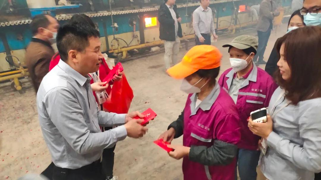 新年新氣象,除了有序投產的生產設備,依諾巖板瓷磚制造中心全體員工也整裝待發,元氣滿滿,將以飽滿蓬勃的姿態和更務實的態度,投入到新一年的工作中去。儀式上,各部門主管代表企業為他們派發了開工利是,為新一年的奮斗帶來激勵。