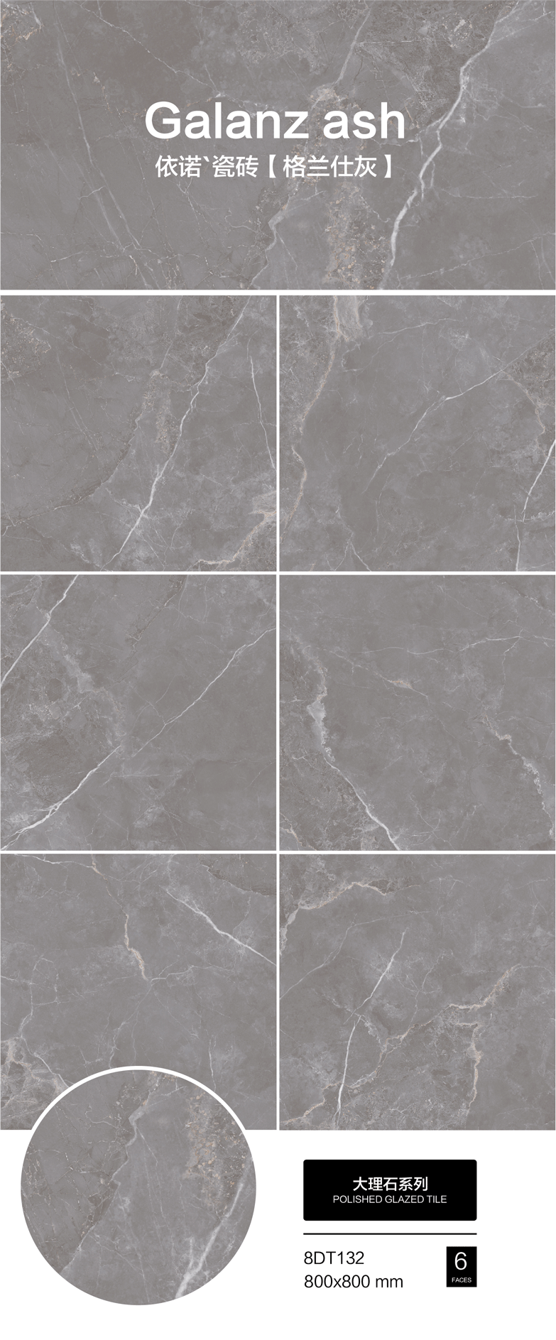 △公衛干區墻面:依諾通體大理石【格蘭特灰8DT132】