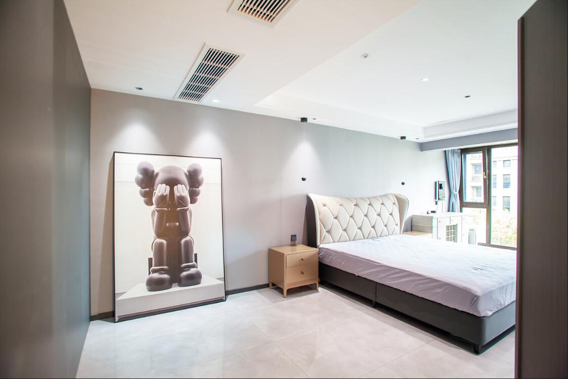 臥室以清雅的灰調(diào)為主,摒去繁雜的裝飾,簡(jiǎn)潔淡雅。落地玻璃窗將室外的光線與自然之景納入室內(nèi),營(yíng)造出悠然靜謐的休憩環(huán)境。