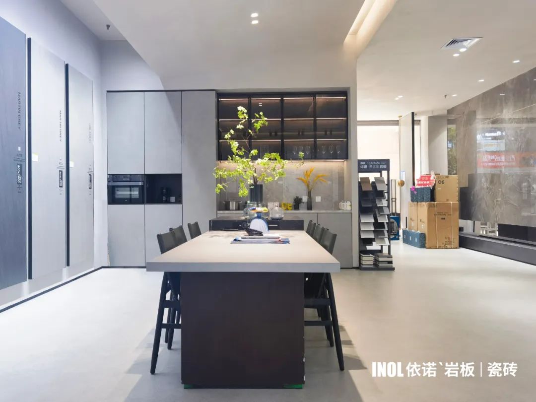 空間形態是一種組織的藝術。因此,依諾巖板瓷磚品牌終端門店的設計,不僅承載著產品展示與銷售的功能,更應該是家居生活的全方位體驗,通過這種「組織的藝術」呈現不同空間的生活范本。