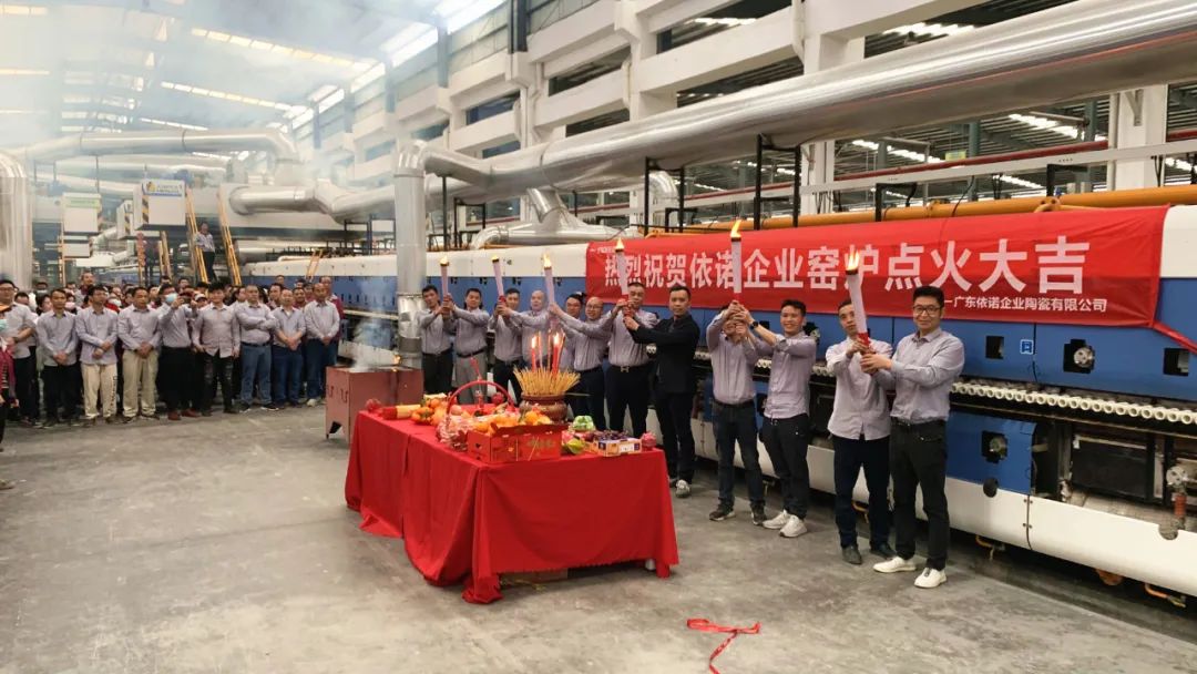 添香納吉,進寶招財,薪火再續,【依諾6號、7號窯爐】被順利點燃,象征著依諾巖板瓷磚廠家智造中心正式開工投產。
