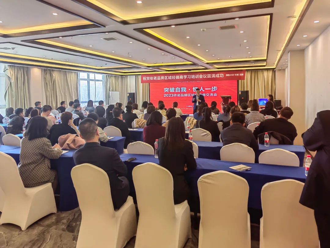 隨后,他講解了《依諾品牌2023年發展規劃》,他結合當前的客觀環境和市場形勢,指出依諾品牌的機遇所在、市場定位和發展目標,并對經銷商提出的困惑加以解答。