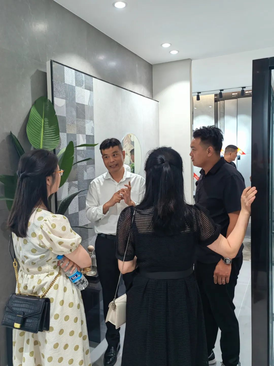 除了參與專題培訓(xùn)及互動交流,福建區(qū)經(jīng)銷商及銷售負(fù)責(zé)人一行還走進依諾巖板瓷磚·長汀旗艦店參觀交流。