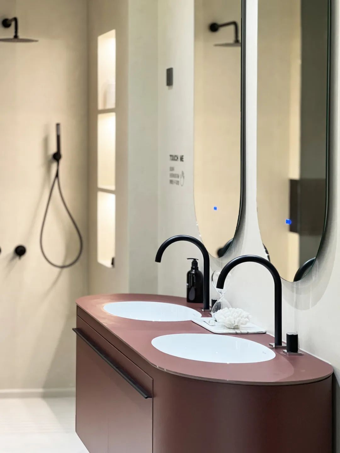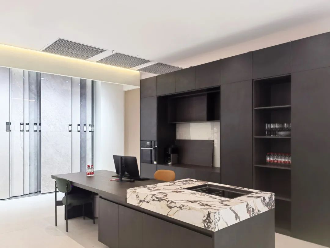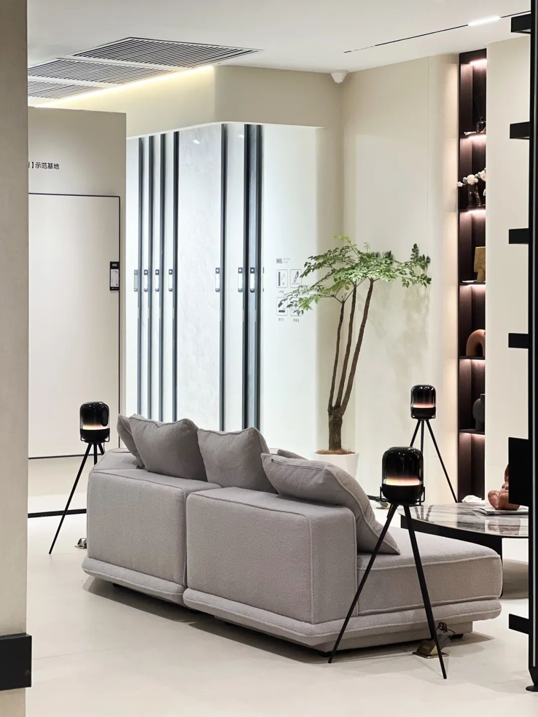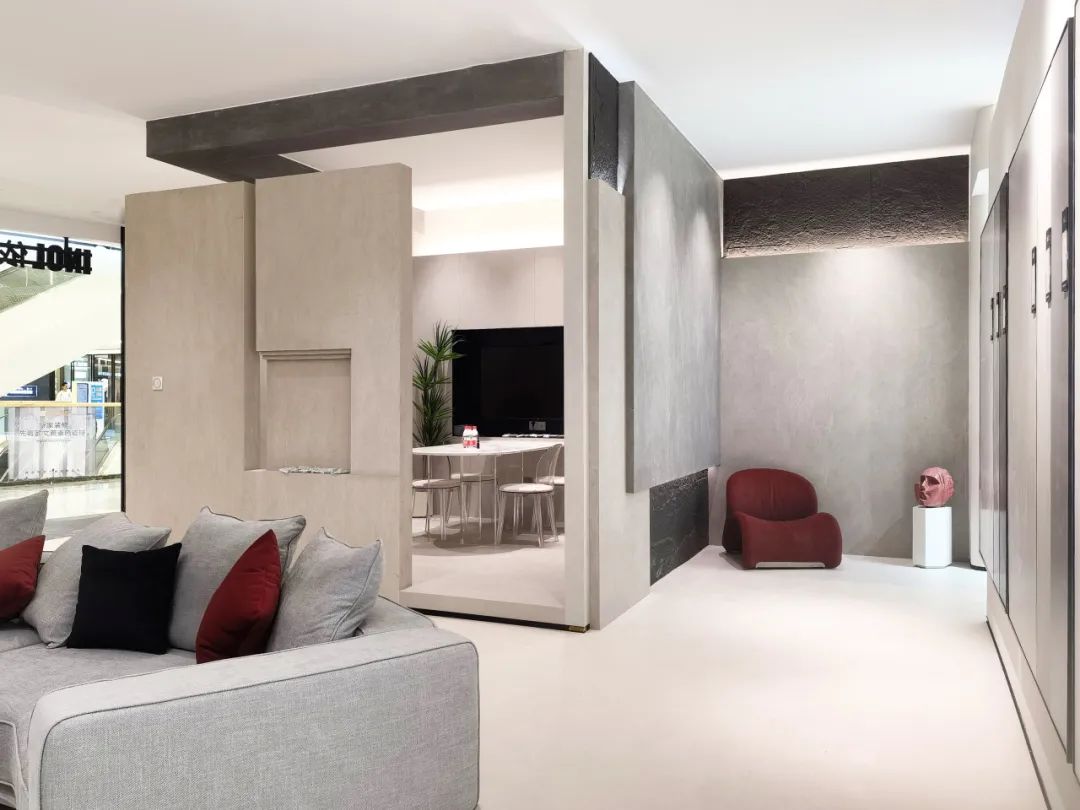 店面以“所見即所得”為設計理念,打造了囊括客廳、廚房、衛浴、茶室、會議室、步梯在內的多空間全景,綜合呈現依諾巖板、瓷磚的全方位應用,為用戶帶來更貼近生活的深度體驗。