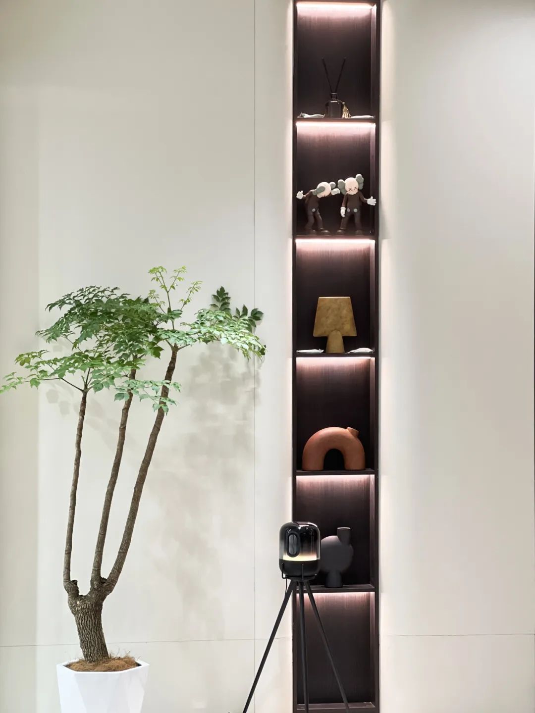 門店外立面在設計上結合了直線與曲線的美感,簡單利落的廓形,弱化空間邊界棱角,在視覺上更有延伸感,引導到訪者進店去發現和感知更多的場景細節。