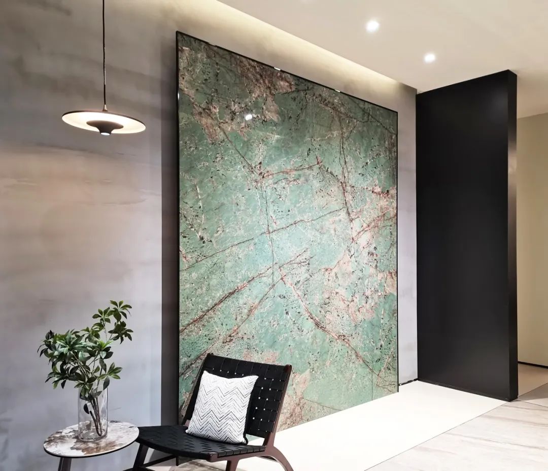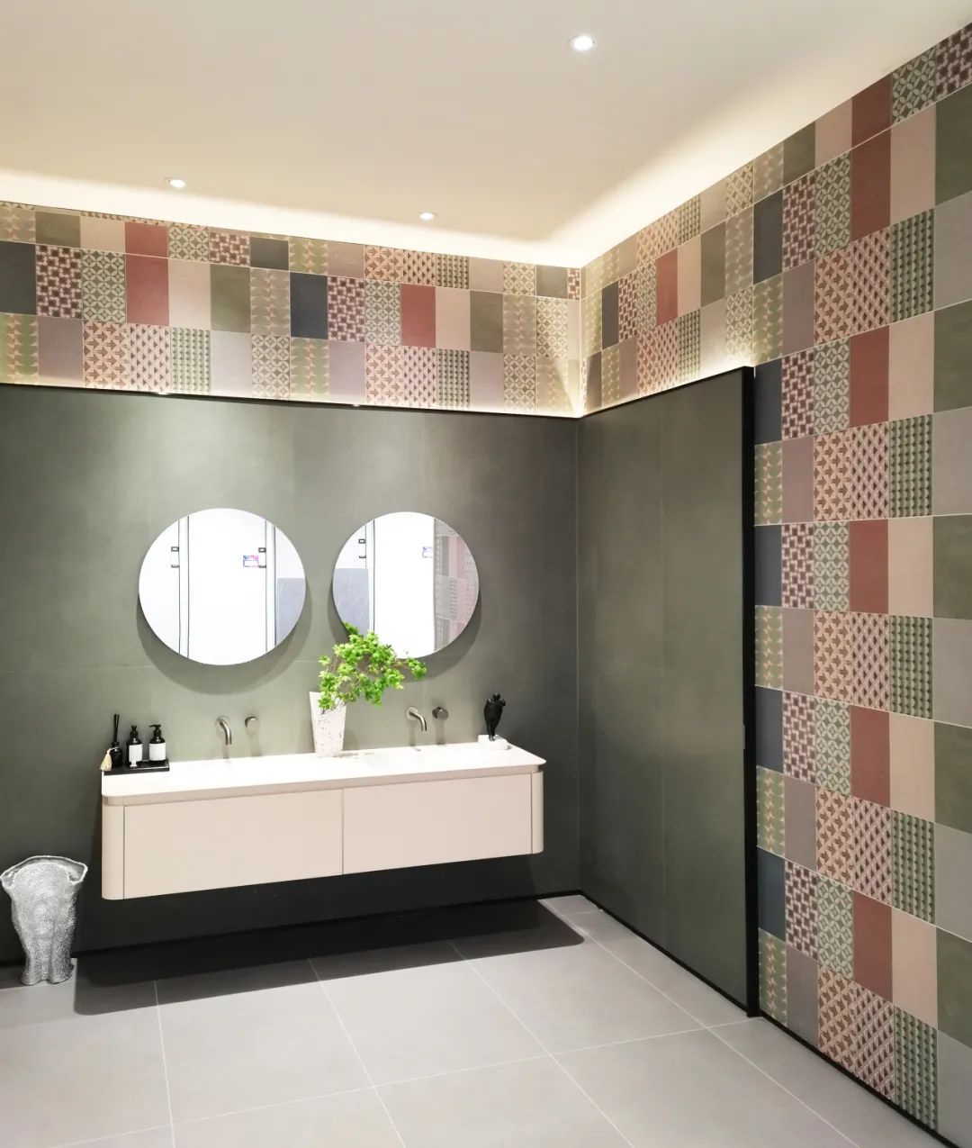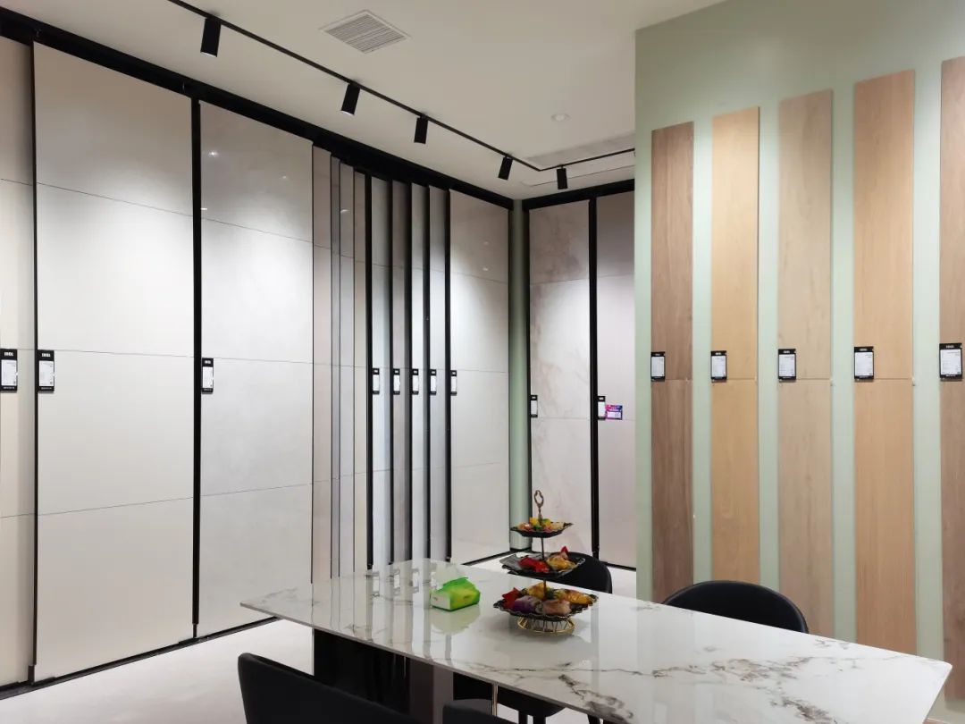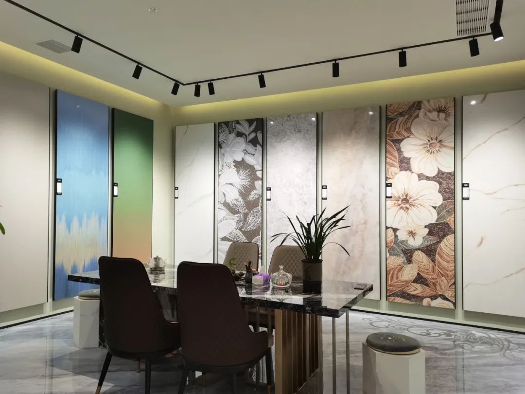 不同肌理、不同質感的巖板/瓷磚產品被運用于各樣板間的表面,強調產品在不同場景中的表現力,為消費者展現“所見即所得”的應用效果。