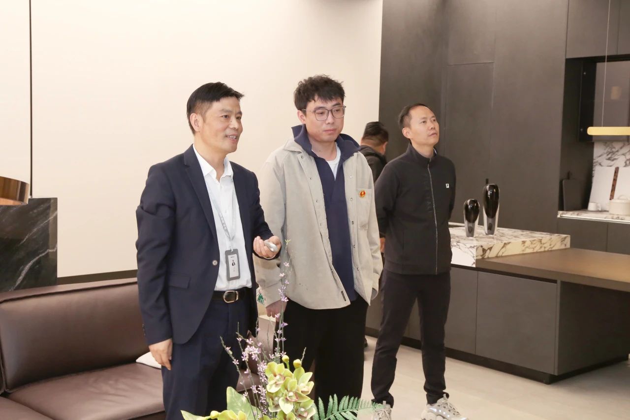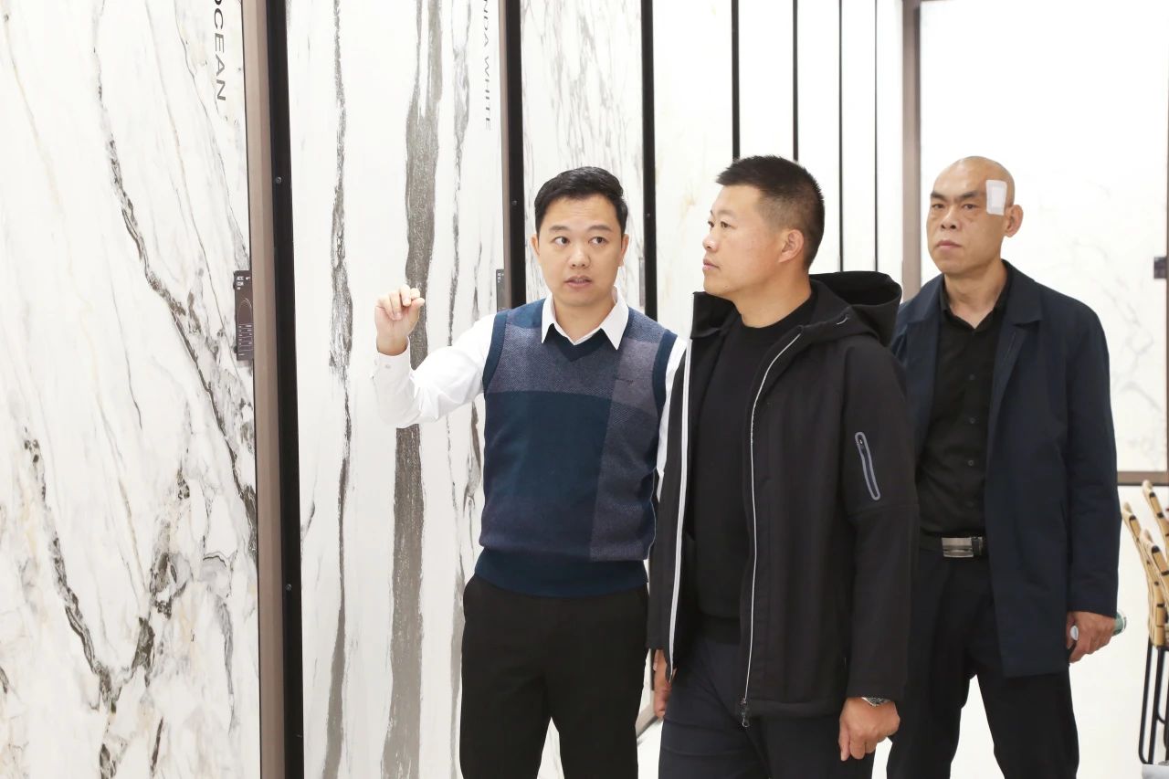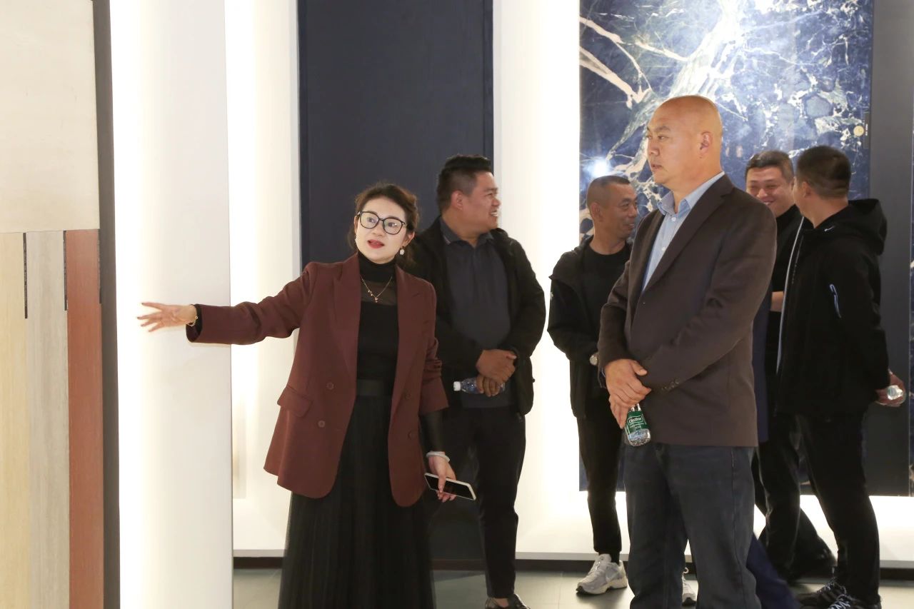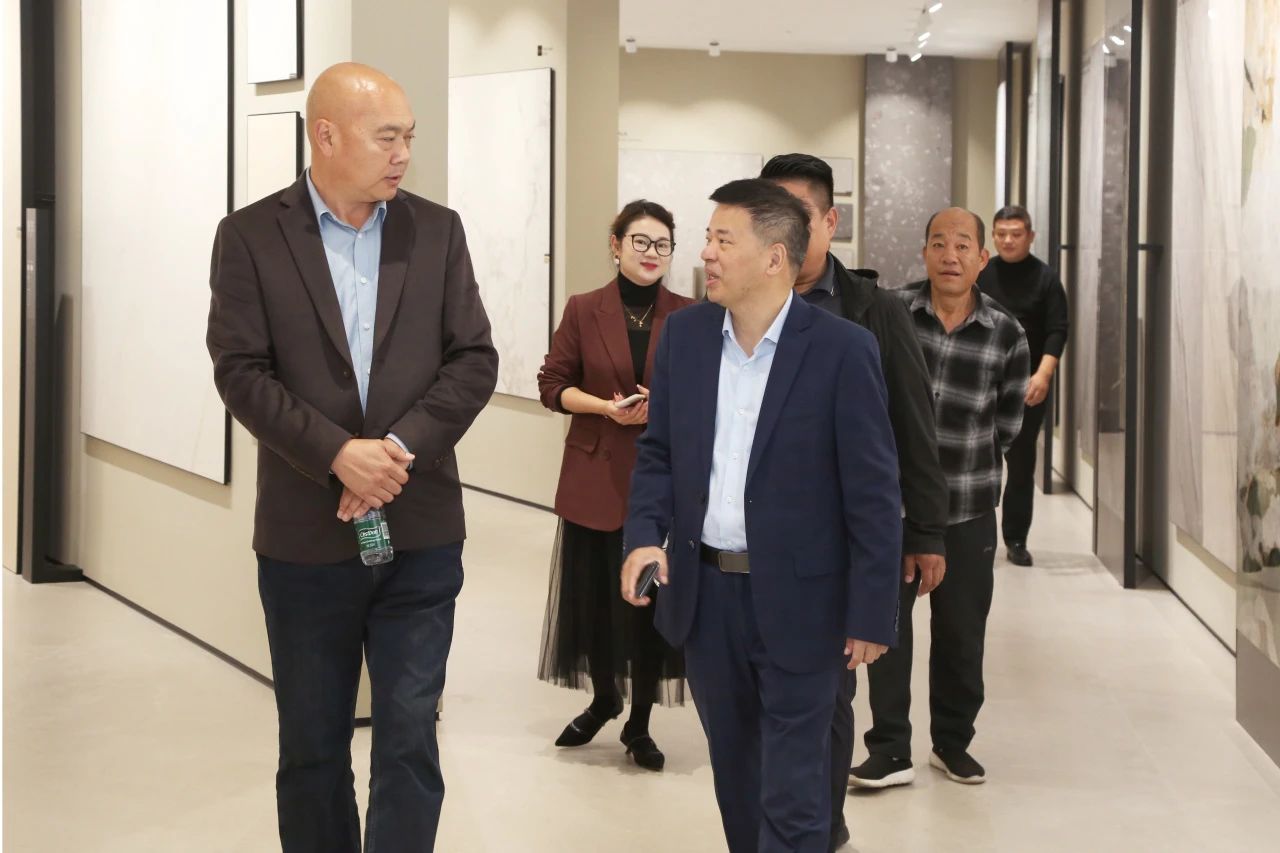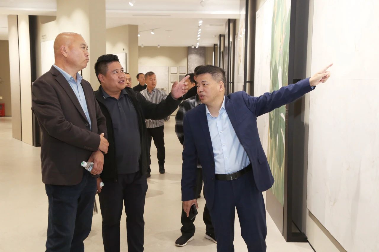 12月2日,山東羅莊朱陳建材市場董事長 孫廣林、總經理 孫廣海及市場營銷商會團隊一行蒞臨依諾巖板瓷磚品牌全球營銷中心參觀交流。