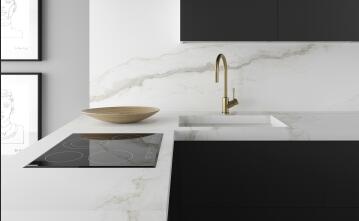 依諾巖板×法迪奧聯合推出的【不銹鋼巖板櫥柜&島臺】,依諾3mm超薄巖板,自重輕,應用于【櫥柜門板】開合自如,不易變形;【櫥柜臺面】使用12mm厚度的巖板,坯體堅實,承重更強,是家居臺面的理想材料。