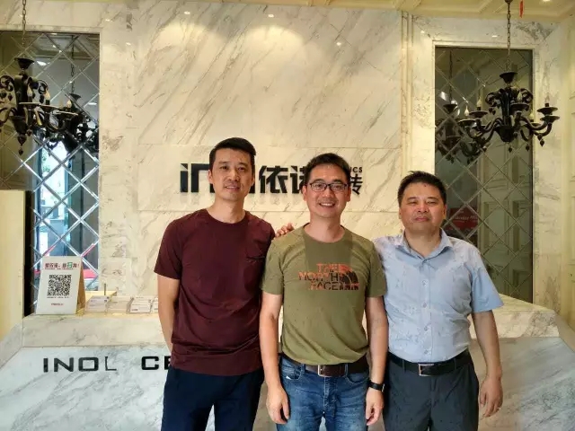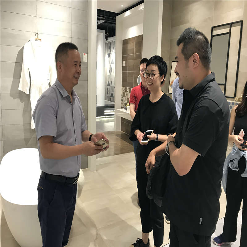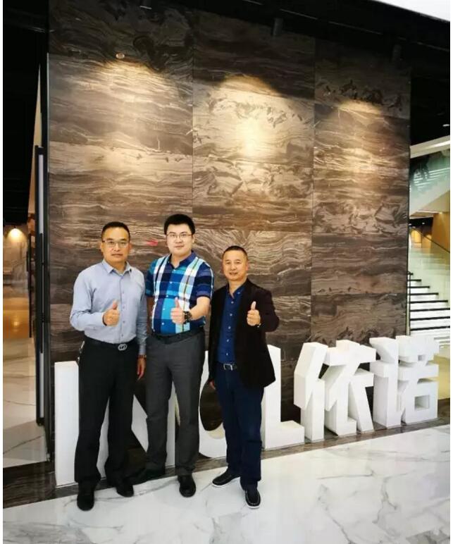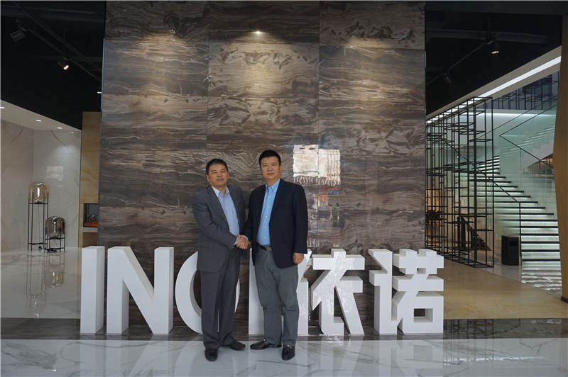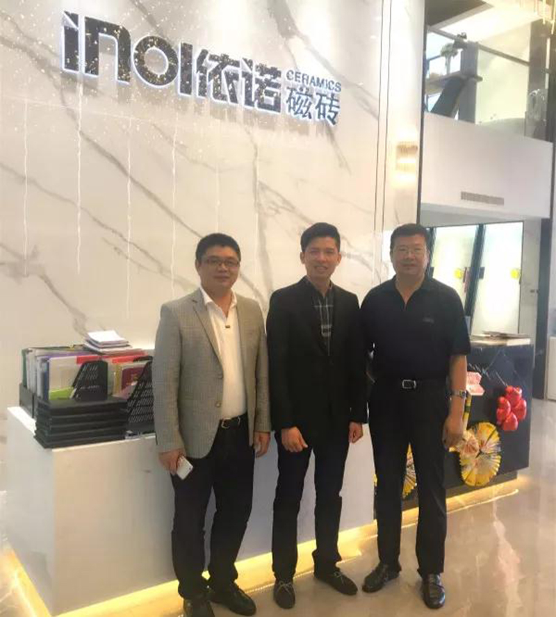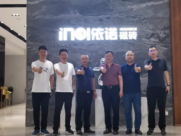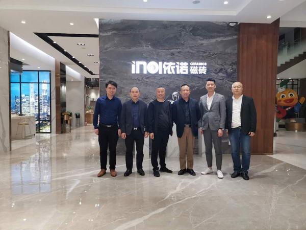 依諾瓷磚戰略合作伙伴尚高衛浴董事長曹宇勇一行前來依諾佛山總部參觀交流和選材。依諾企業總經理郭萬龍先生熱情接待曹總一行參觀依諾總部展廳,并詳細介紹依諾產品和未來發展趨勢;雙方就瓷磚與衛浴在產品、設計、展示方面的融合進行了深入探討。