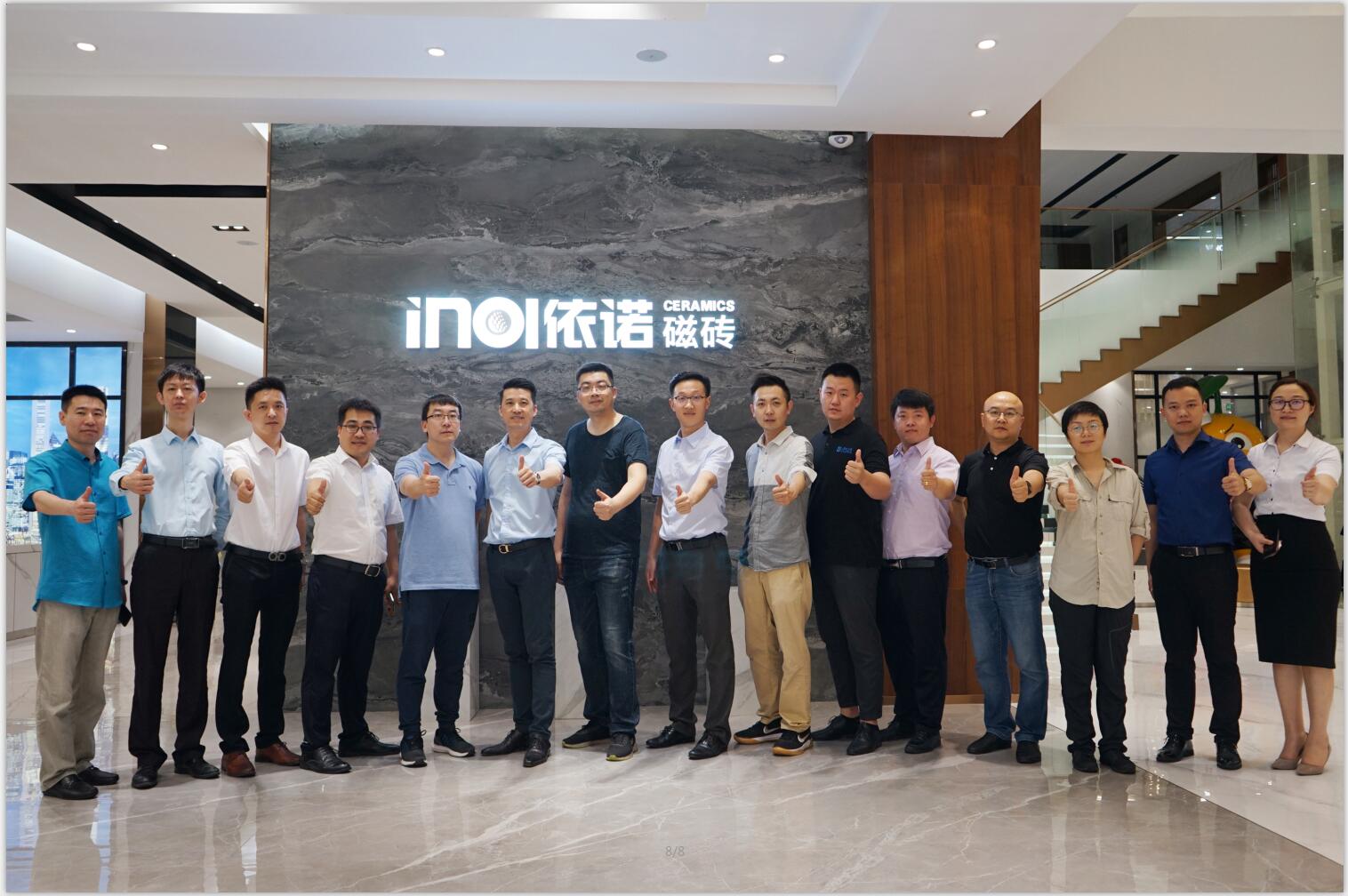 近日,佛山市依諾陶瓷有限公司營銷中心迎來了山東泰安等多地客戶前來簽約,據悉,山東泰安的客戶本次成功簽約,將開啟與依諾磁磚合作的第5年。