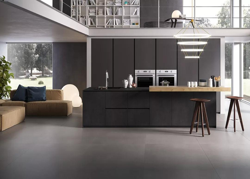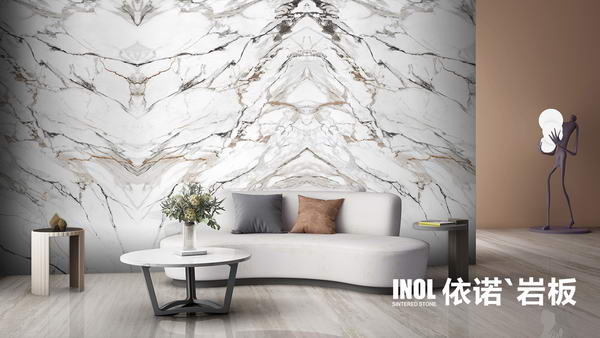 依諾巖板廠家推出質感巖板【科西嘉】900×1800mm和600×1200mm的子母規格,省卻搭配煩惱。大規格可以用在客廳地面,小的可以用在洗手間地面或墻地通用,滿足“全屋通用”的需要。