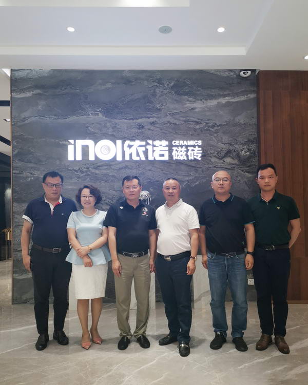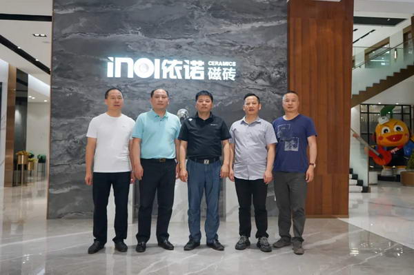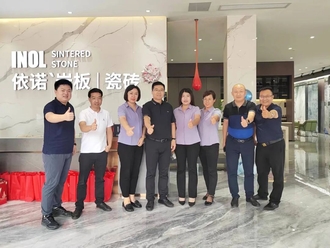 山東羅莊朱陳建材市場董事長 孫廣林、總經理 孫廣海及市場營銷商會團隊一行蒞臨依諾企業全球營銷中心參觀交流。依諾巖板瓷磚對此次來訪高度重視,并安排了專業的講解團隊全程陪同,為參觀團詳細介紹了依諾巖板瓷磚品牌理念、產品特色及生產工藝。