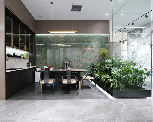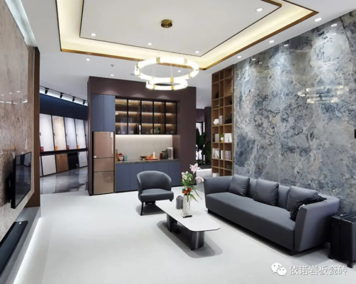 四川簡陽買瓷磚去哪?依諾巖板瓷磚四川簡陽旗艦店,將300㎡的巖板瓷磚空間與產品美學相結合,以豐富的巖板瓷磚產品、多變的搭配,讓不同用戶都能在這里找到適合自己的家居風格。