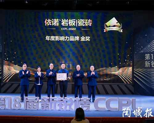 第20屆陶瓷衛浴新銳榜頒獎典禮在佛山隆重舉行,依諾巖板瓷磚廠家全球營銷中心憑借卓越空間演繹及前沿設計理念,從上百家巖板、瓷磚、衛浴品牌中脫穎而出,贏得了“品牌展廳”金獎的殊榮。