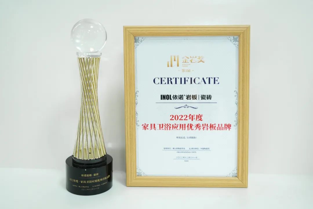 巖板哪個品牌質量?依諾巖板怎么樣?佛山市陶瓷學會、中國陶瓷網與您一起來見證,第三屆“金巖獎”依諾巖板憑借強大的綜合實力和出眾的表現,通過大獎組委會的嚴格評審,攬獲“家具衛浴應用優秀巖板品牌”殊榮。
