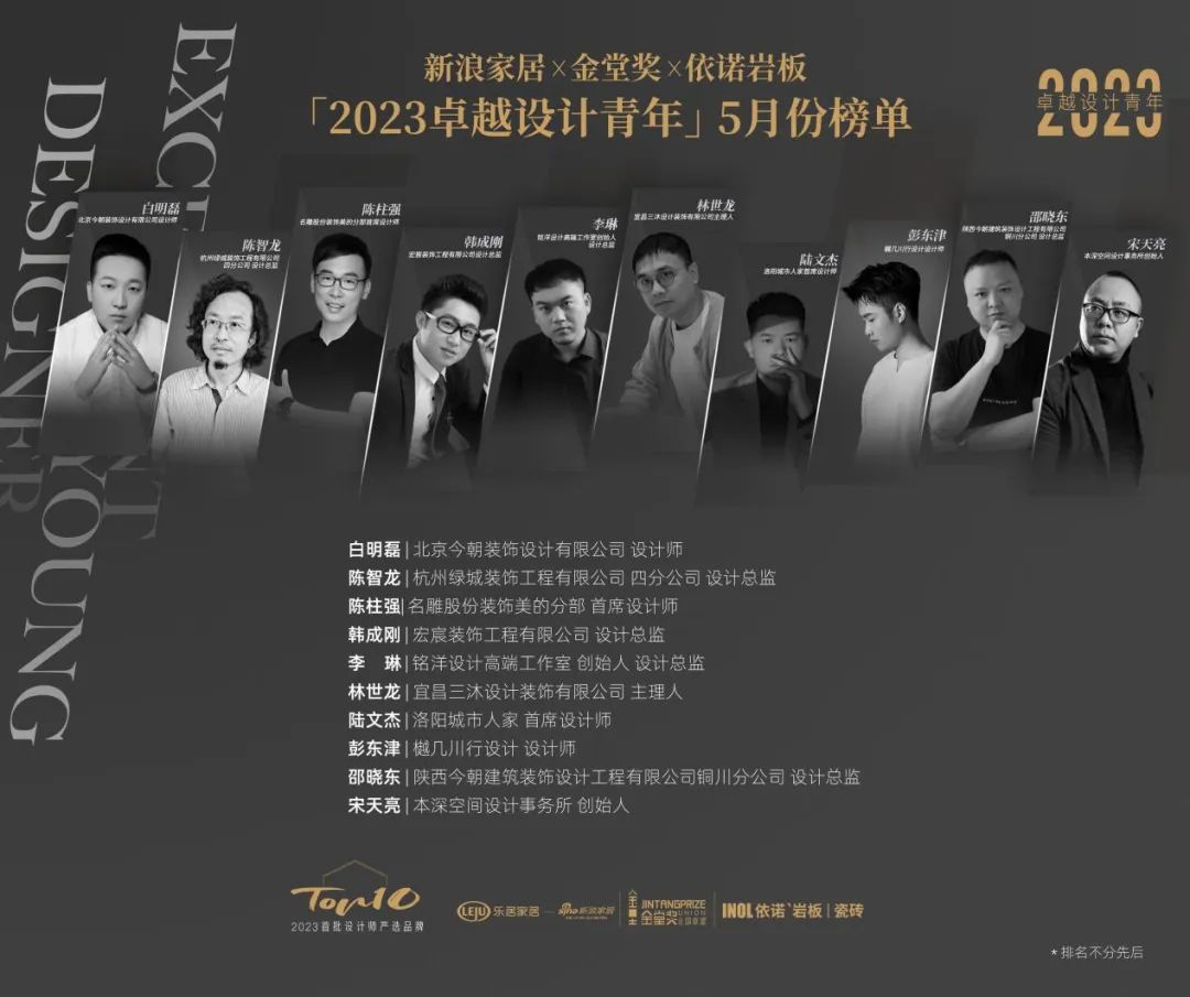 依諾巖板×新浪家居×金堂獎「2023卓越設計青年」5月榜單出爐!