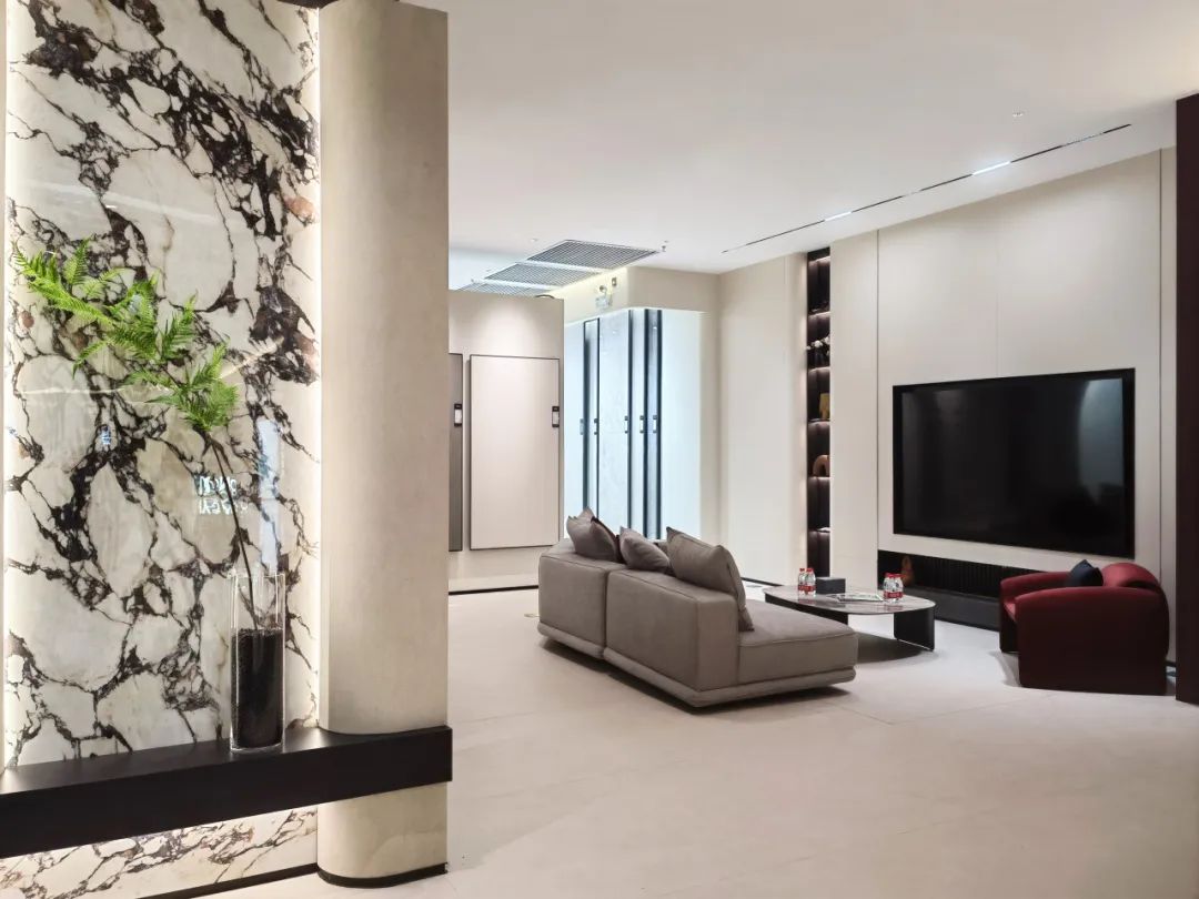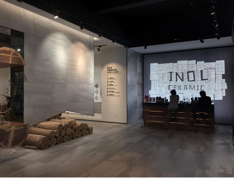 依諾巖板瓷磚晉江新店以500㎡的靜奢之境,不僅是產品陳列空間,更是以巖板/瓷磚為設計語言,開啟一場材質與空間的深度對話。