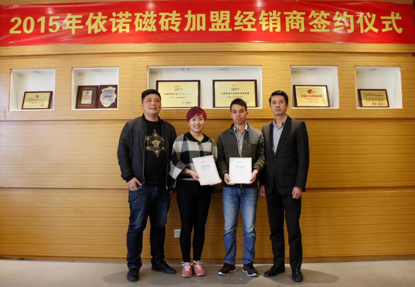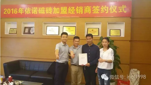 瓷磚招商加盟什么品牌比較好?哪個品牌產品花色多,款式齊全,質量過硬。依諾·新客戶加盟,祝賀廣東英德·陳華沖先生與依諾瓷磚簽約!目前依諾還有一些空白區域正在招商,歡迎來電咨詢。