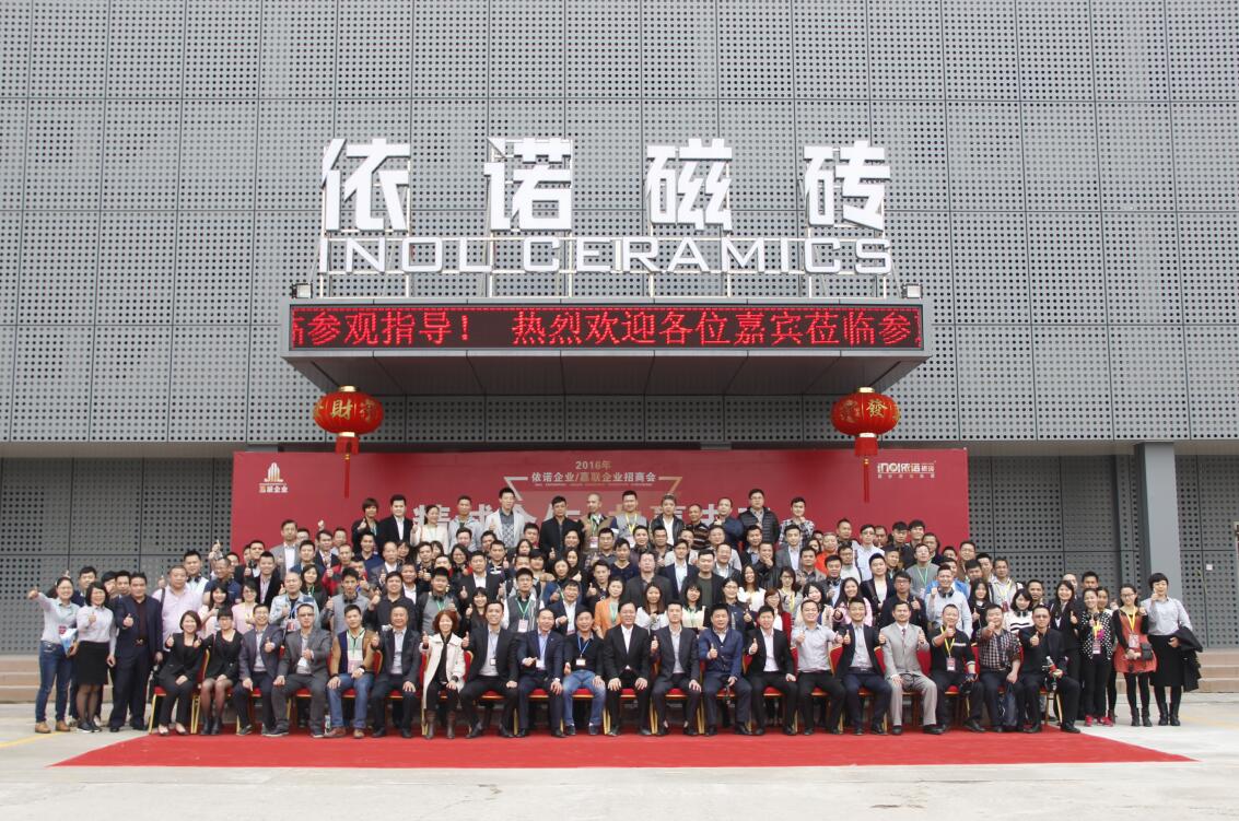 2016年10月19日,主題為“依諾邀您賺大錢”的2016依諾瓷磚招商會暨新品發布會在佛山隆重舉辦。據悉,今日現場新簽約客戶56名;陶博會2天,共新增簽約客戶89名,在陶瓷行業,單品牌簽約數量中名列前茅。