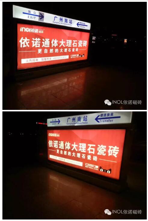 依諾瓷磚發出品牌傳播最佳爆發力,斥資投放核心城市廣告,品牌形象大提升,想不知道都難的瓷磚品牌。將最新意大利設計品質,以及“品質生活”的理念全國推廣,強勢樹立起高端陶瓷制造的領跑者形象 ?