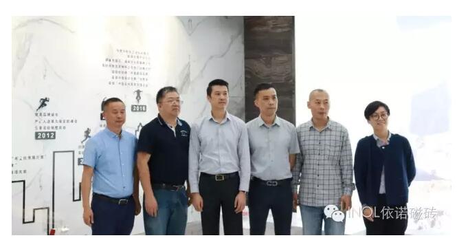 百安居上海總部領導一行前來依諾磁磚佛山總部參觀交流。據悉,依諾磁磚與百安居戰略合作已有5年的時間