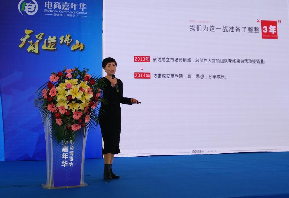 12月17日,依諾瓷磚受邀參加佛山電商嘉年華“電商名人堂”,與東鵬瓷磚、林氏木業、華耐家居等億元電商大咖同臺分享家居行業電商的模式變化和2017年的布局思路。