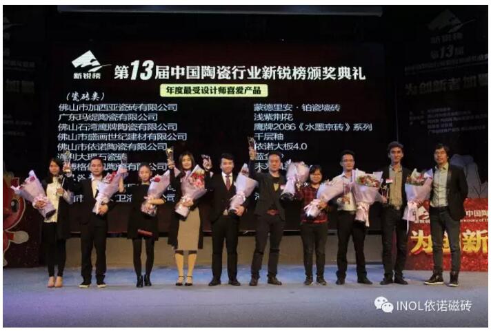 嚴峻的經濟環境下,如何才能再市場立足,那么瓷磚代理選擇一個好品牌很重要!第18屆陶瓷衛浴行業新銳榜頒獎盛典隆重舉行依諾瓷磚品牌憑借強大的品牌實力,榮獲“年度影響力品牌「金獎」”這一重量級大獎。