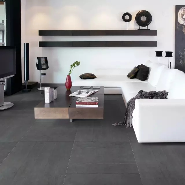 2017年深灰色新品仿古磚《丹麥灰》系列產品簡介,專業設計師教您搭-仿古磚空間應用效果貼圖及軟裝搭配。深灰色仿古磚與室內軟裝、色彩效果搭配。藍、紅、黃、白亮色與仿古磚復古系列的完美融合。